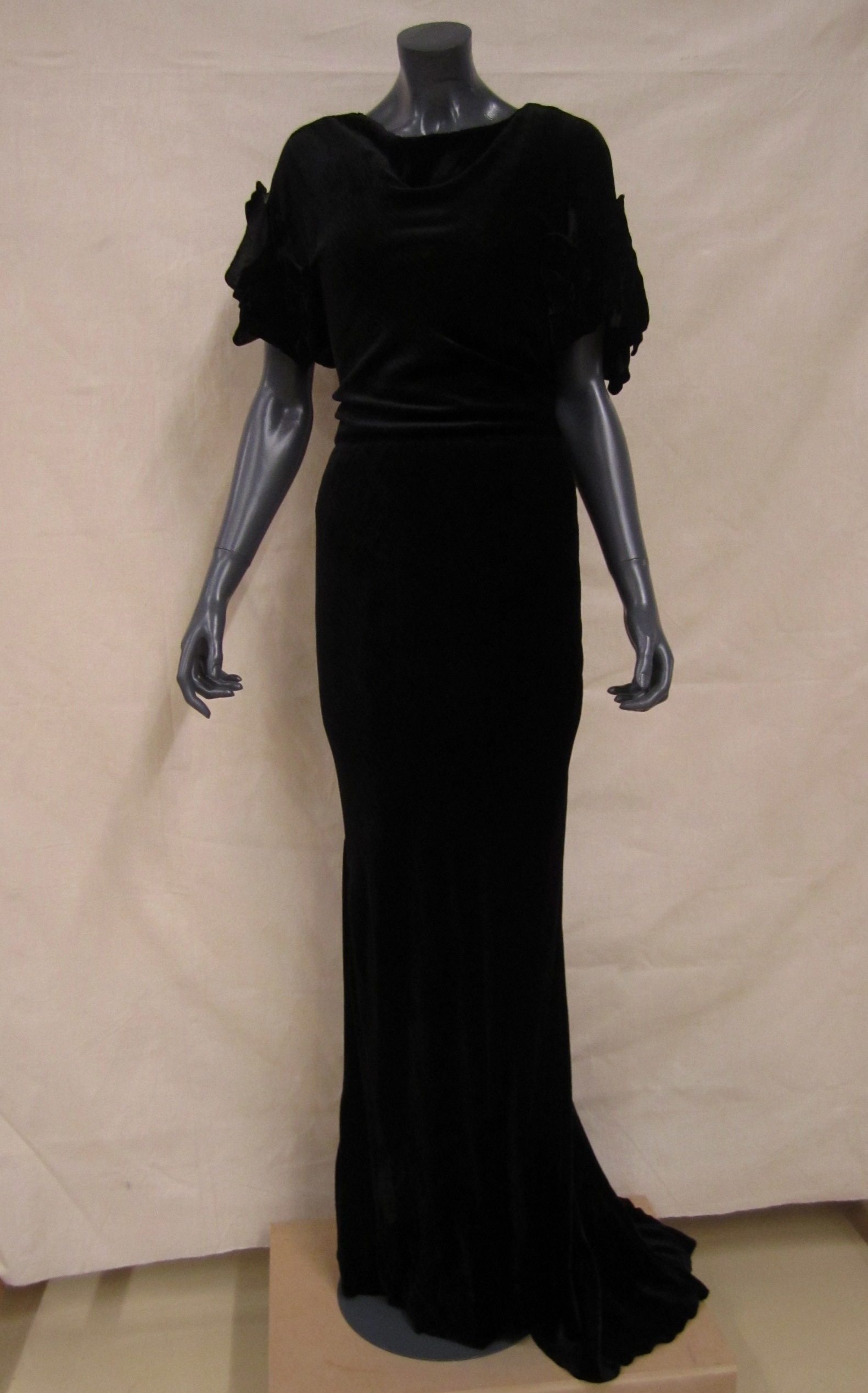 Avondjurk van zwarte velours, lijfje met pellerine-e...