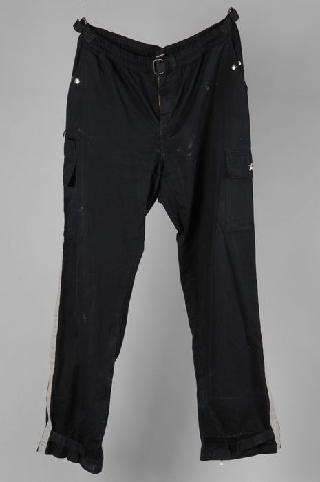 Zwarte werkbroek met witte bies, van Bulgaarse bouwv...