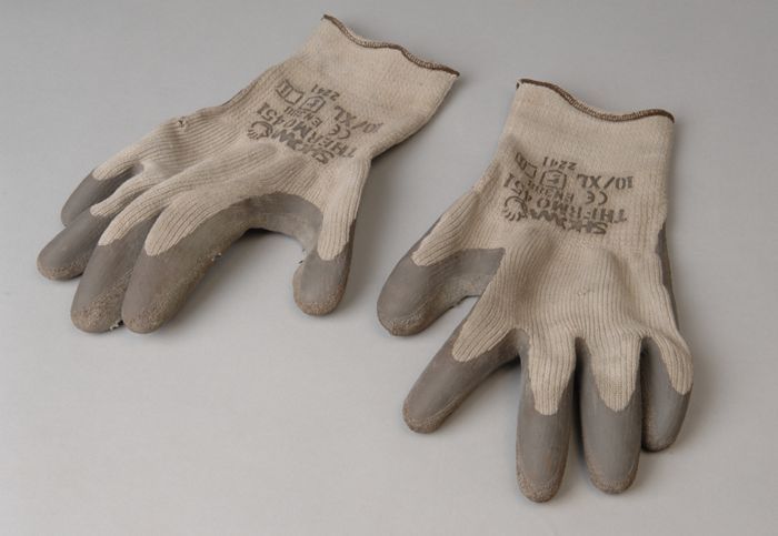 Paar wit met grijze werkhandschoenen, van Bulgaarse ...