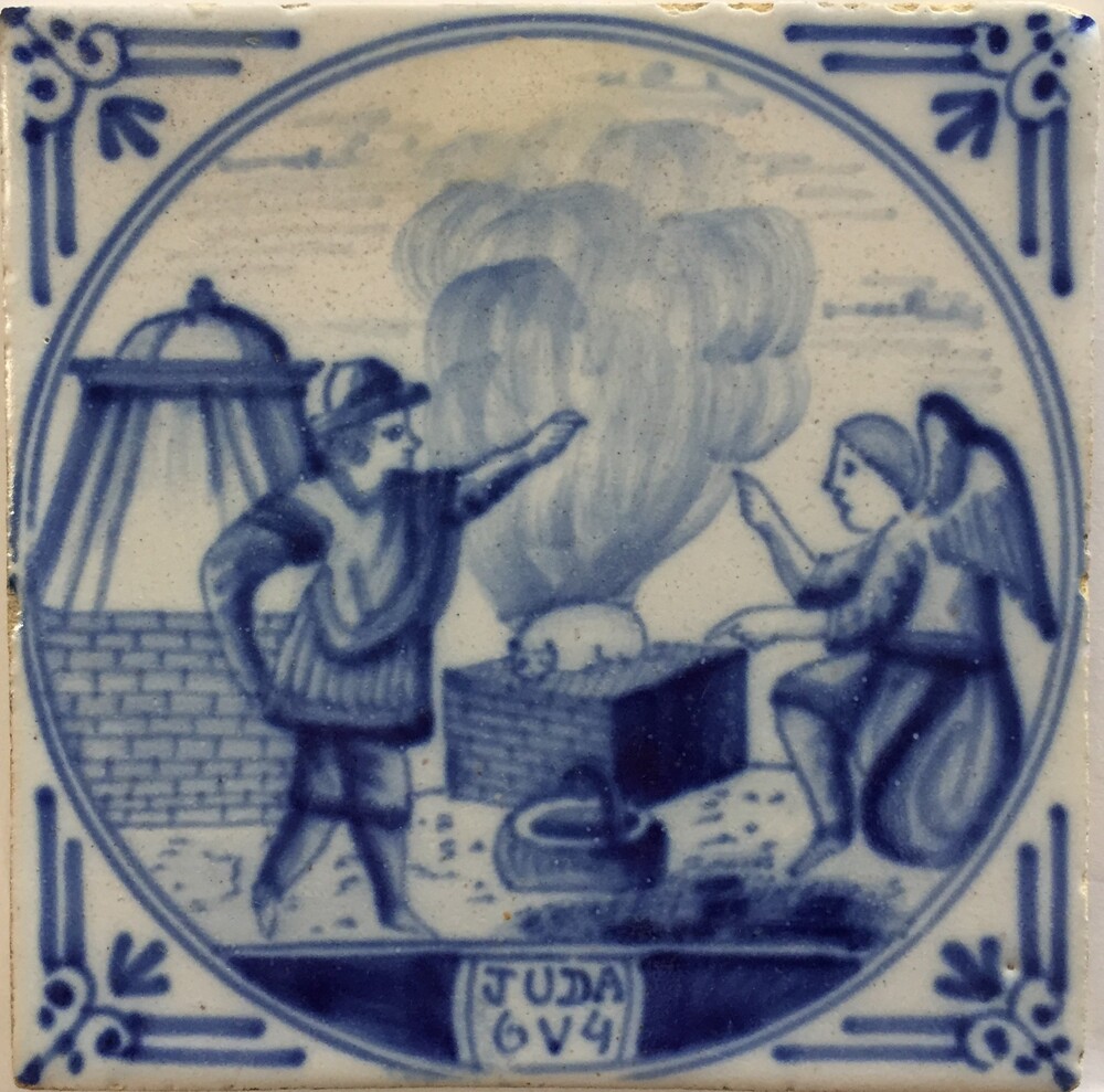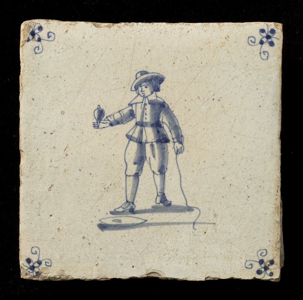 tegel van keramiek met tinglazuur, voorstellende: Gi...