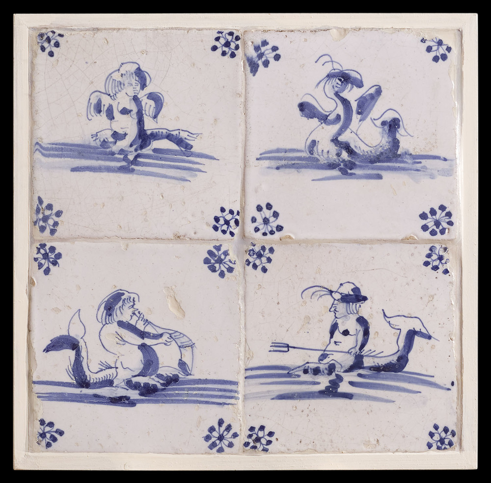 Tegelveld van keramiek, tinglazuur, voorstellende ee...