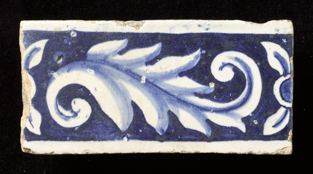 Scherf van keramiek, tinglazuur, gemaakt in Nederlan...