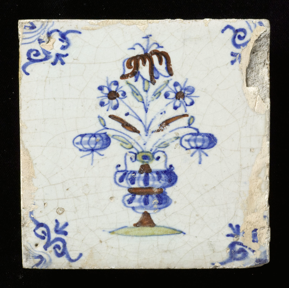 Tegel van keramiek, tinglazuur, voorstellende een bl...