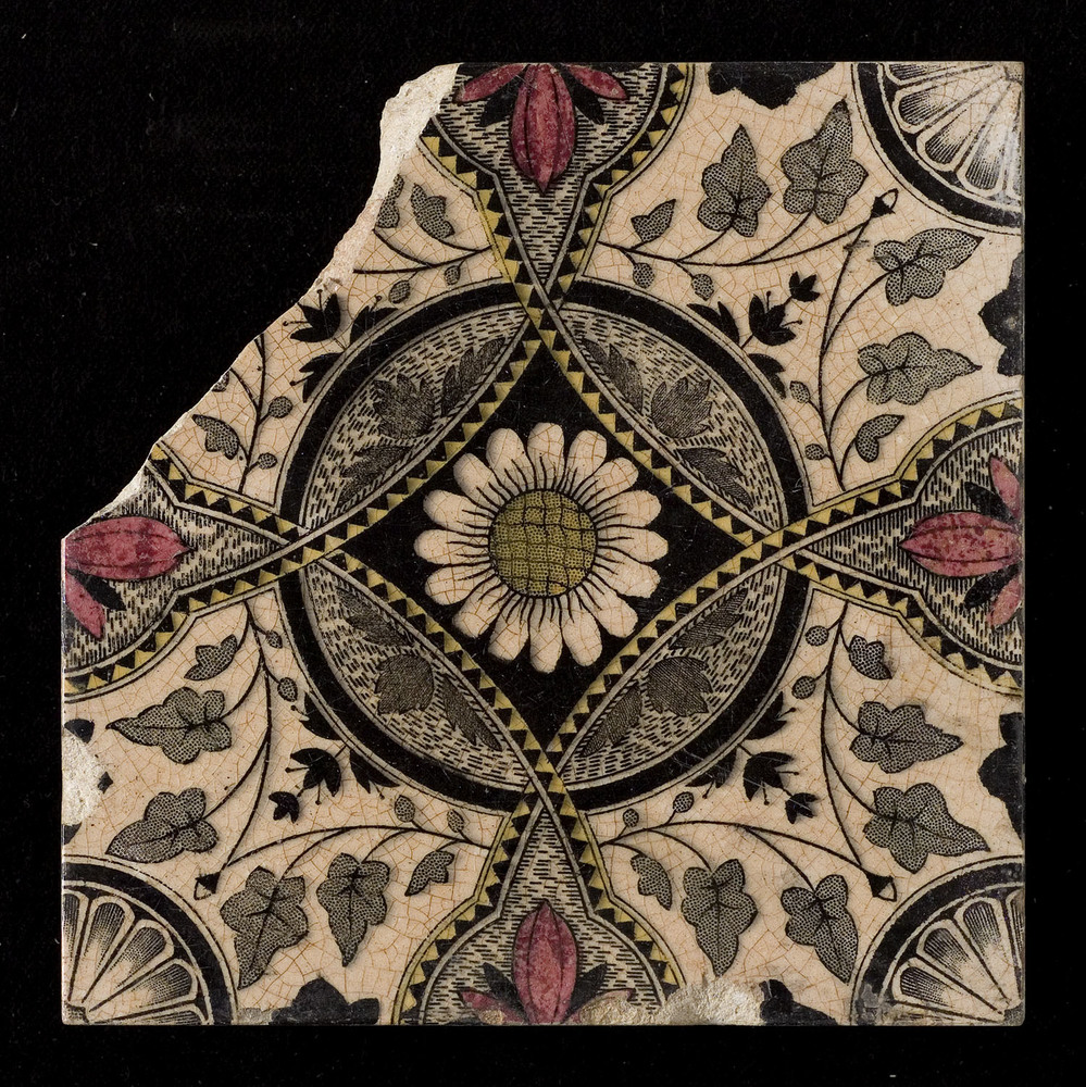 Tegel in transfer-techniek, met voorstelling: Orname...