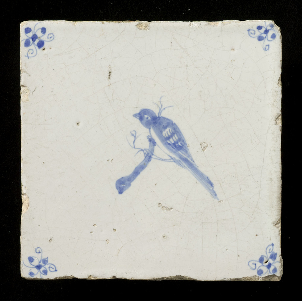 Tegel van keramiek, tinglazuur, voorstellende een vo...