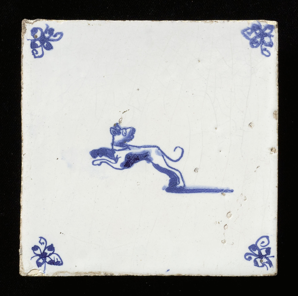 Tegel van keramiek, tinglazuur, voorstellende een la...