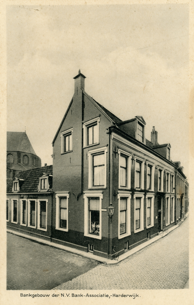 Prentbriefkaart, getiteld 'Bankgebouw der N.V. Bank-...
