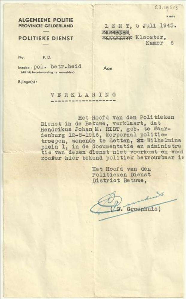 verklaring politieke betrouwbaarheid H.J.M. Ridt