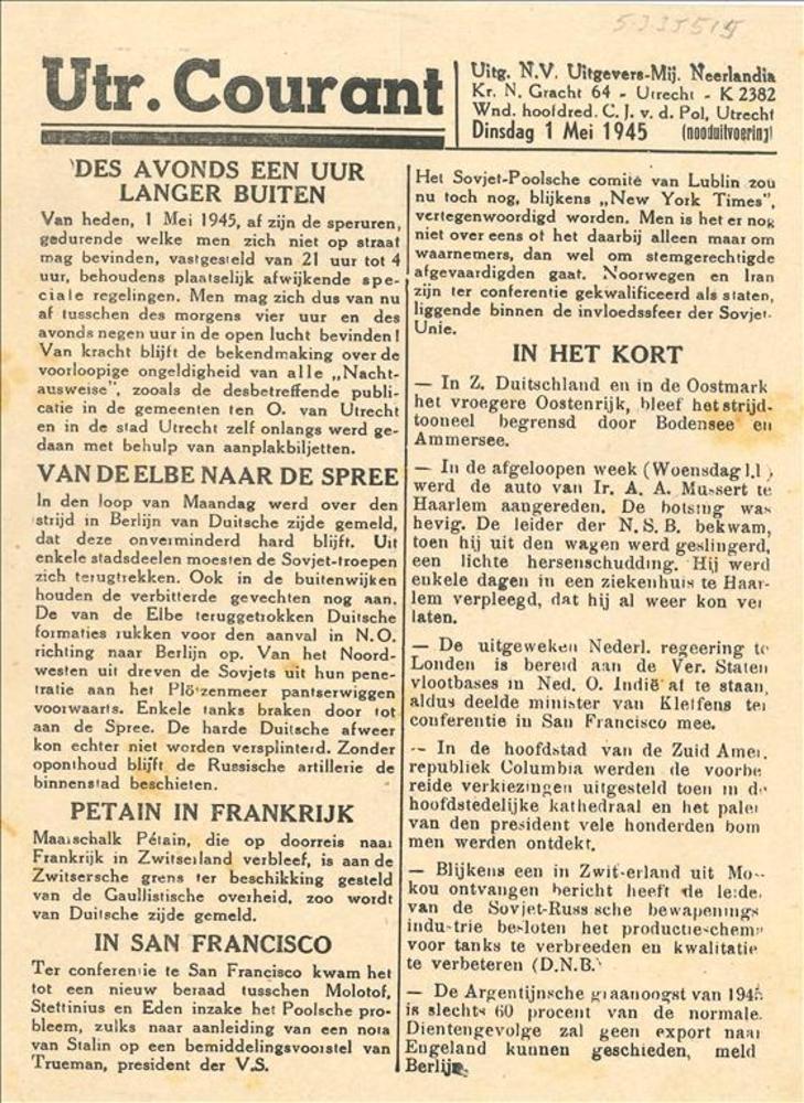 Utrechtsche Courant, dinsdag 1 mei 1945