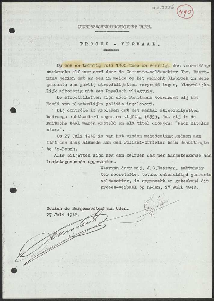 Proces-Verbaal Luchtbeschermingsdienst Uden 27 juli ...