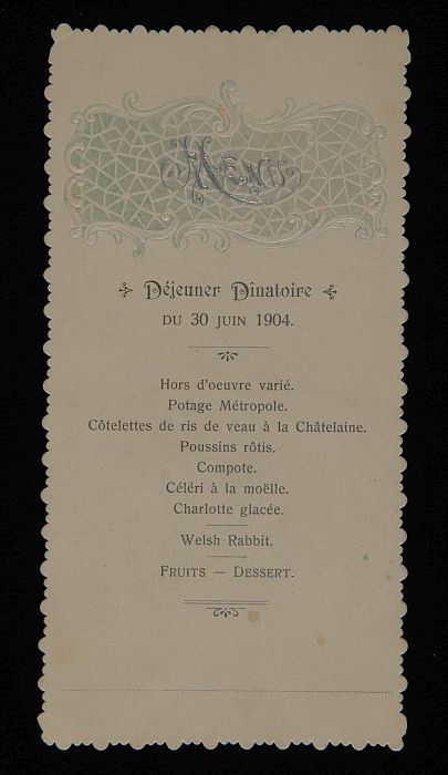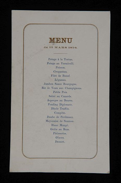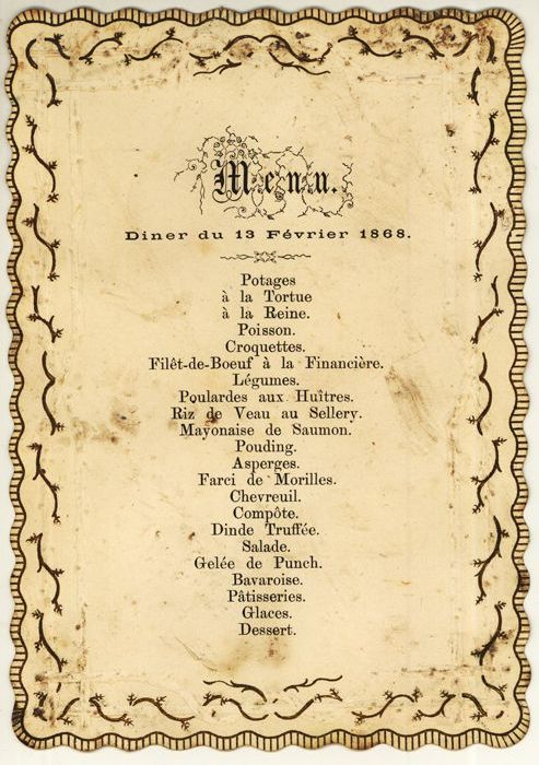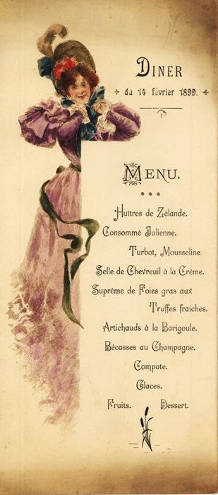 Menukaart, in het Frans gesteld, met goudkleurige op...
