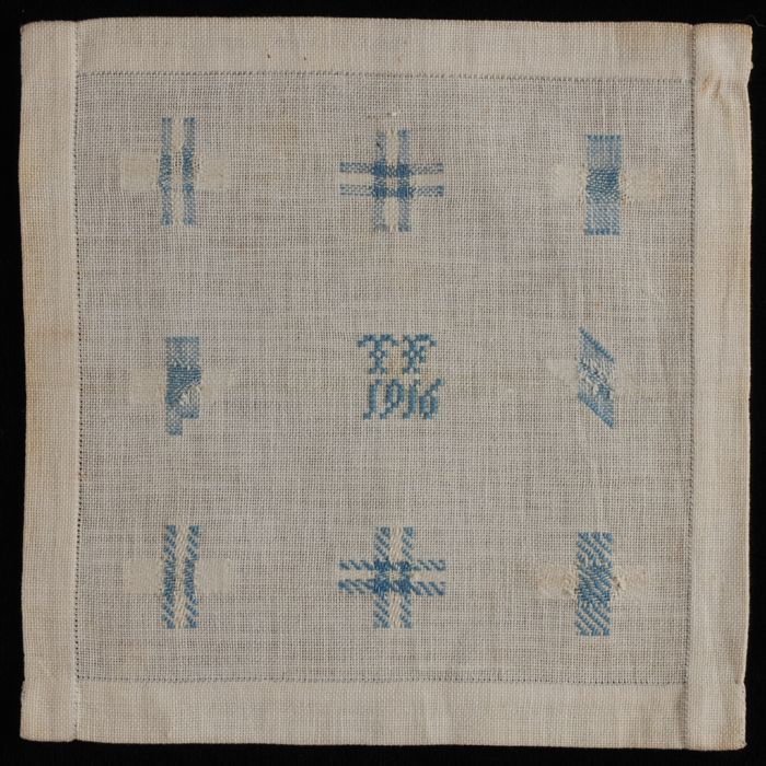 Teenstuk gebreid van fijn wit katoen, oefening