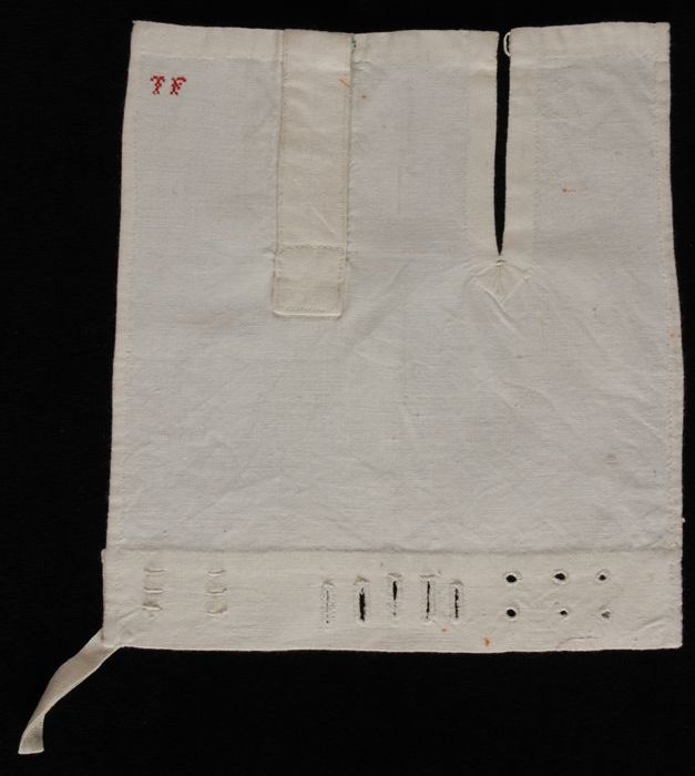 Knoopsgatenlap van wit katoen met diverse sluitingen...