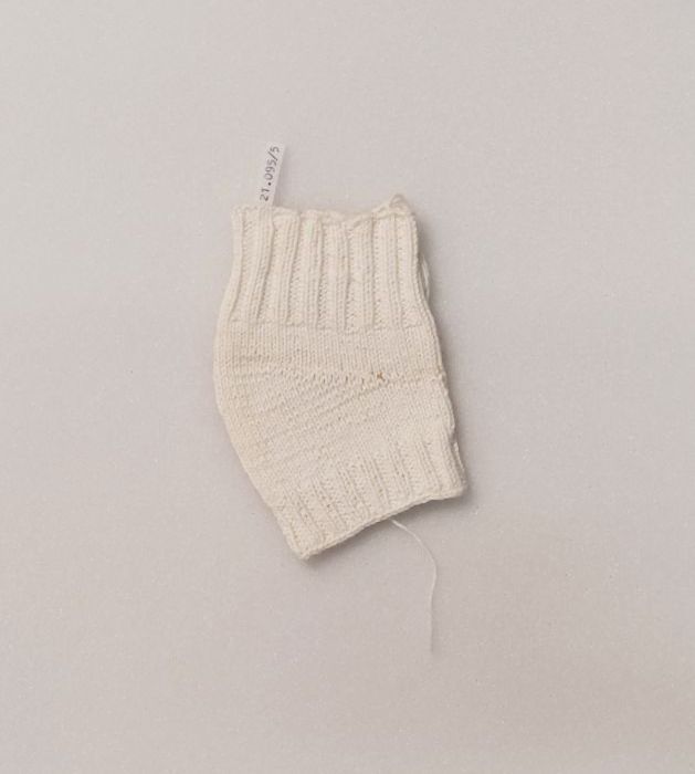 Sok gebreid van fijn wit katoen, oefening
