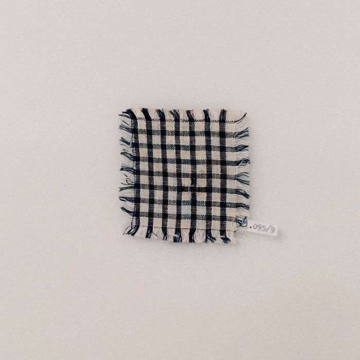 Stoplap van blauw geruit katoen met stopwerk, oefening