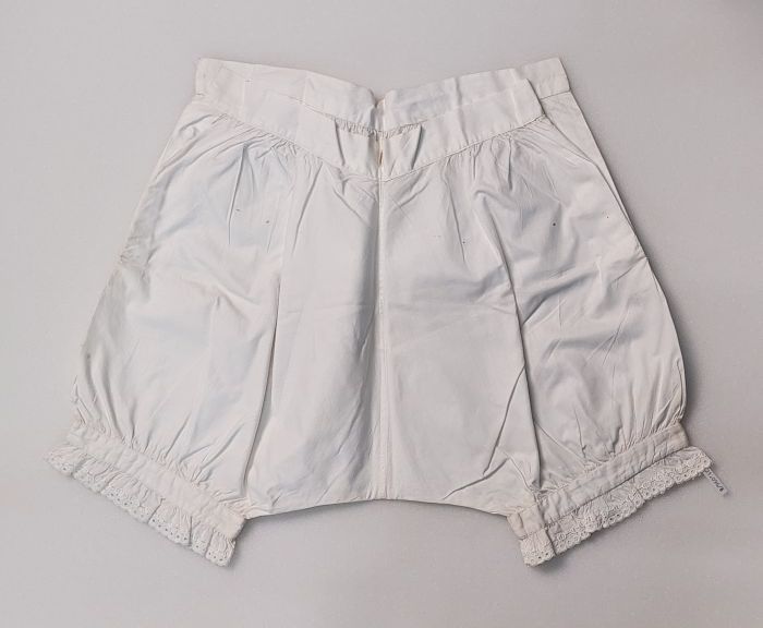 Onderbroek met korte pijpjes van wit katoen met brod...