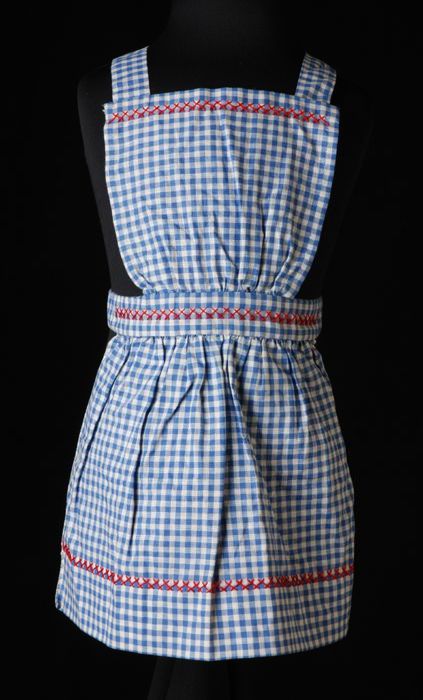 Kinderschort van blauw-wit geruit katoen met borduur...