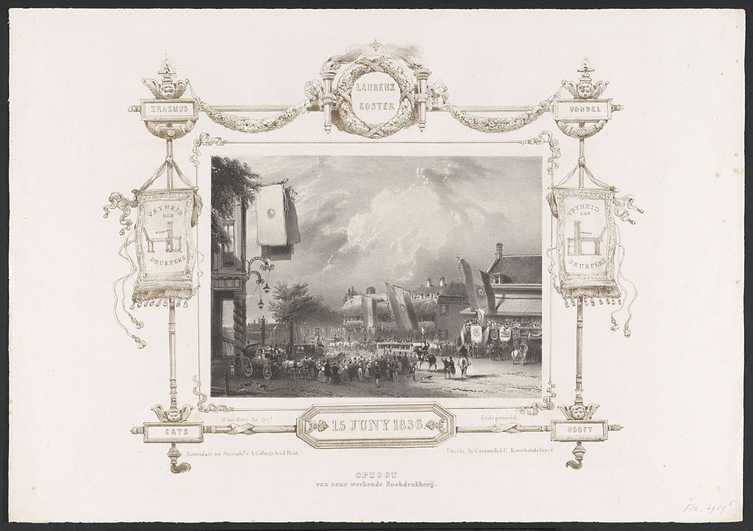 Optocht met een boekdrukkerij, 1836