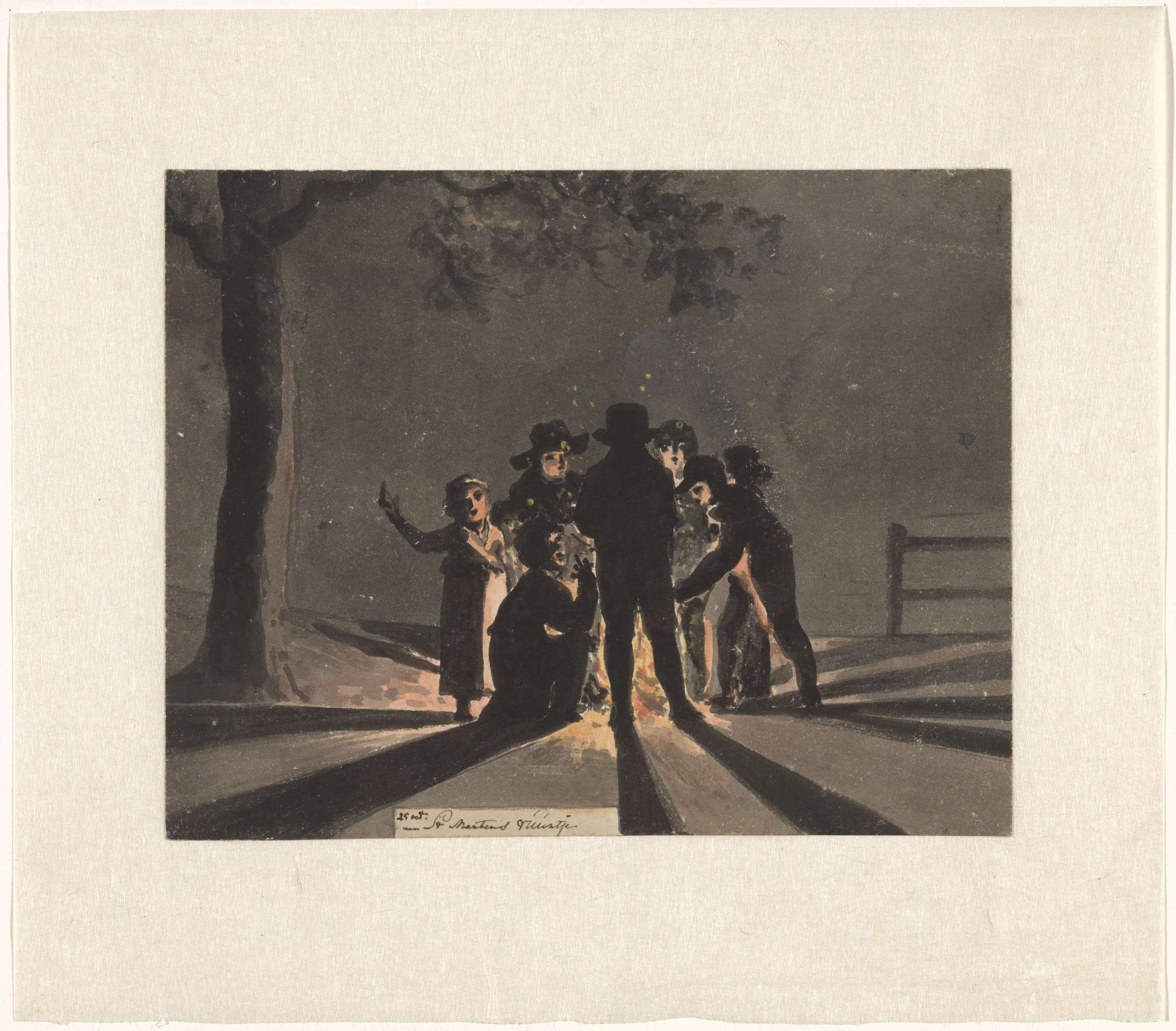 Ontwerp voor een kan met onder de tuit een naakte li...