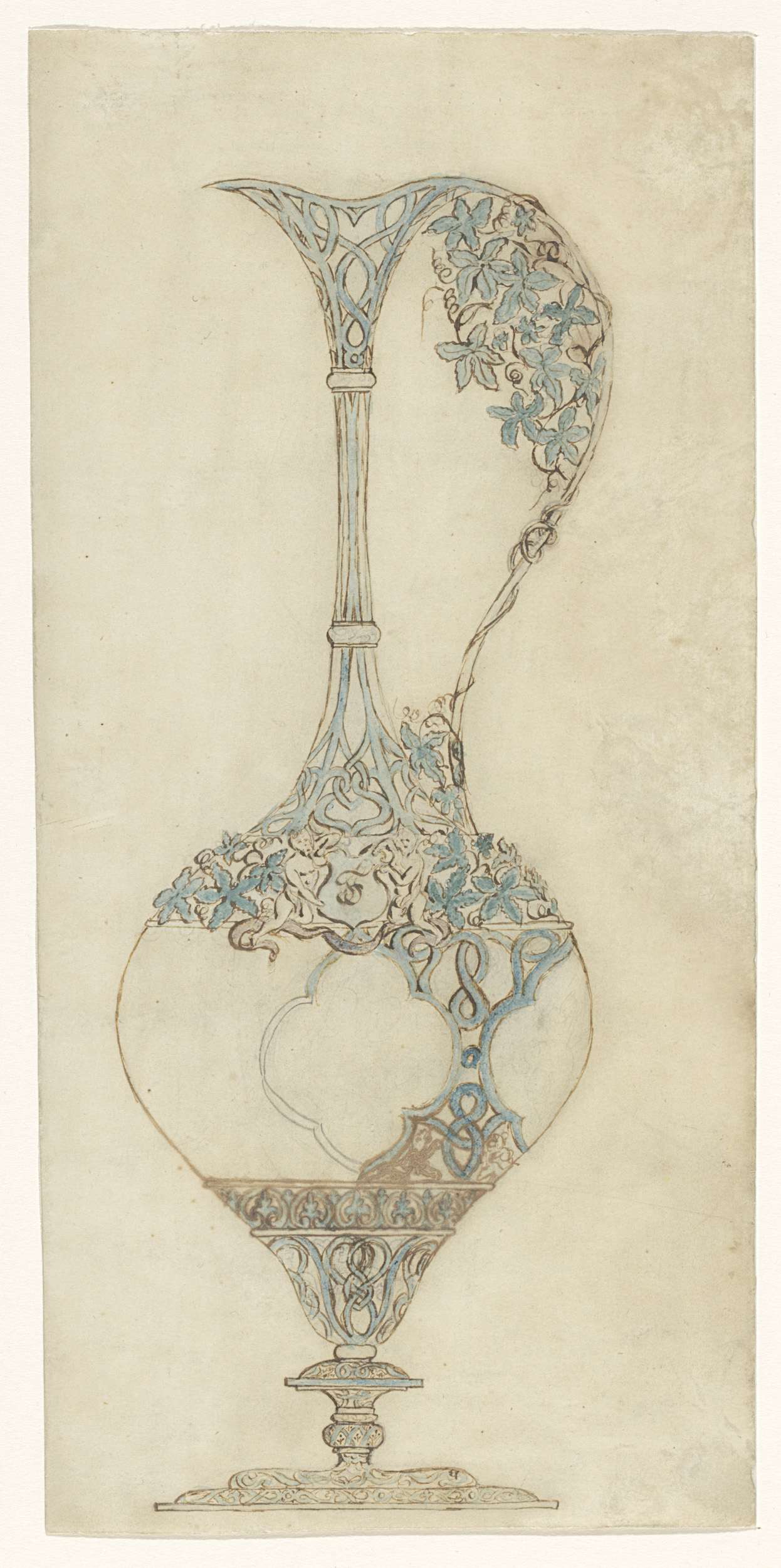 Ontwerp voor een kan met een deksel bekroond door Fama