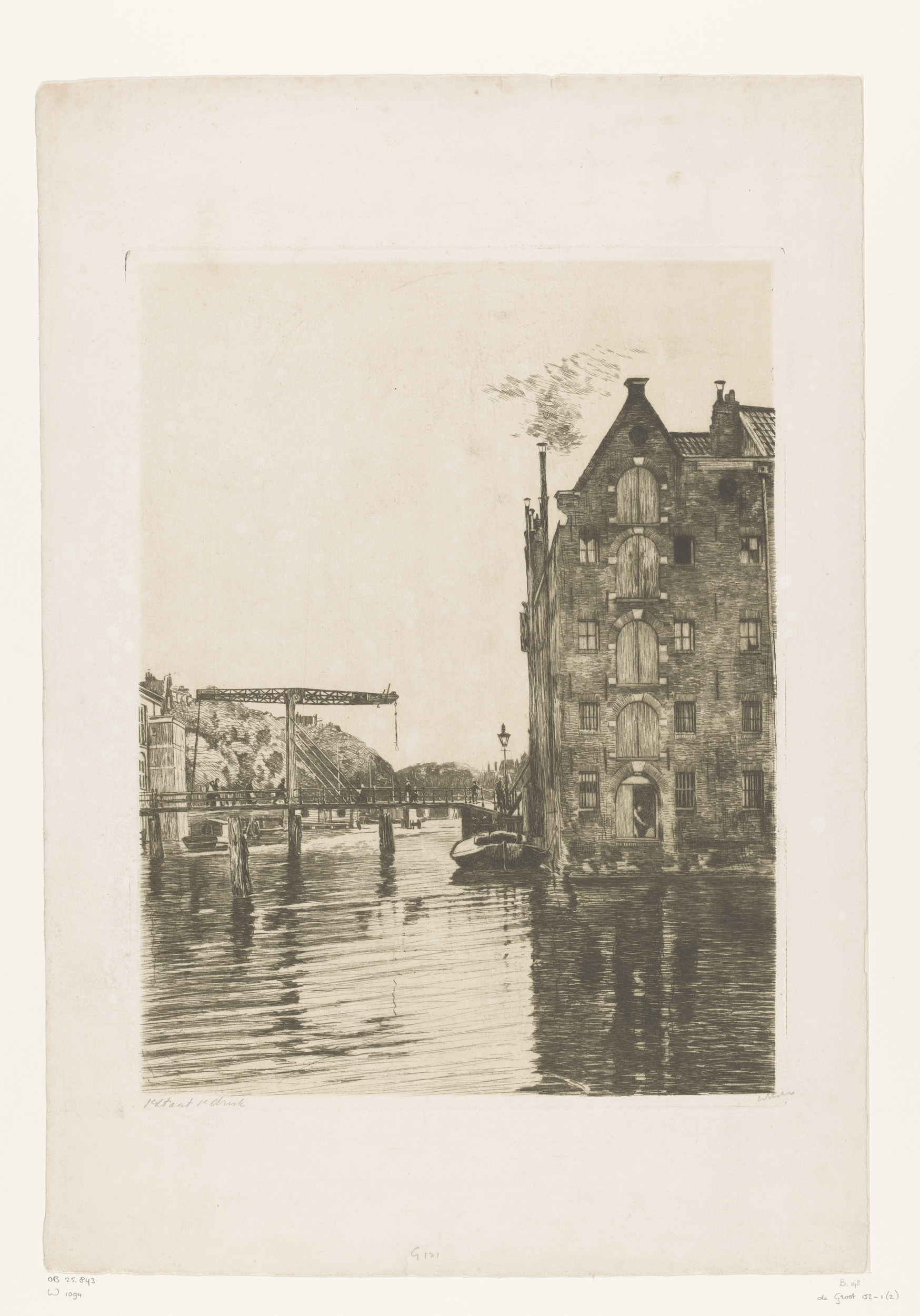 Gezicht op de ophaalbrug tussen Rapenburg en Uilenburg