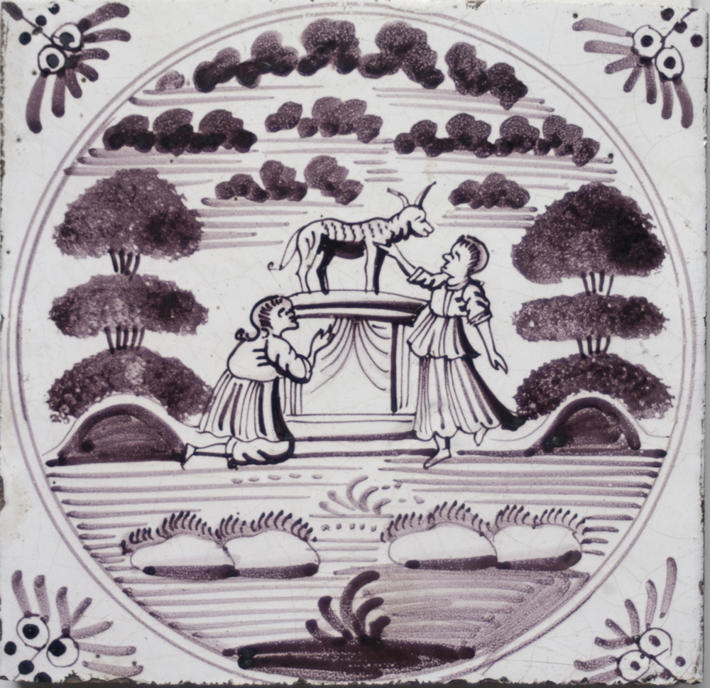 tegel van keramiek met tinglazuur, voorstellende: He...
