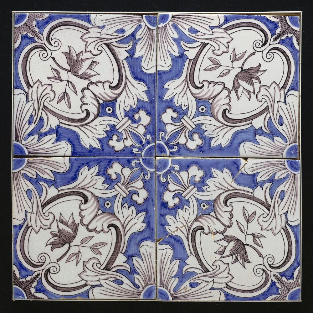 Tegelveld van keramiek met tinglazuur, voorstellende...