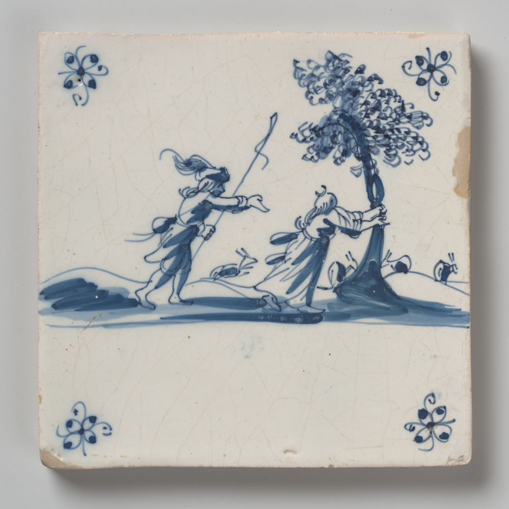 tegel van aardewerk met tinglazuur, voorstellende: h...