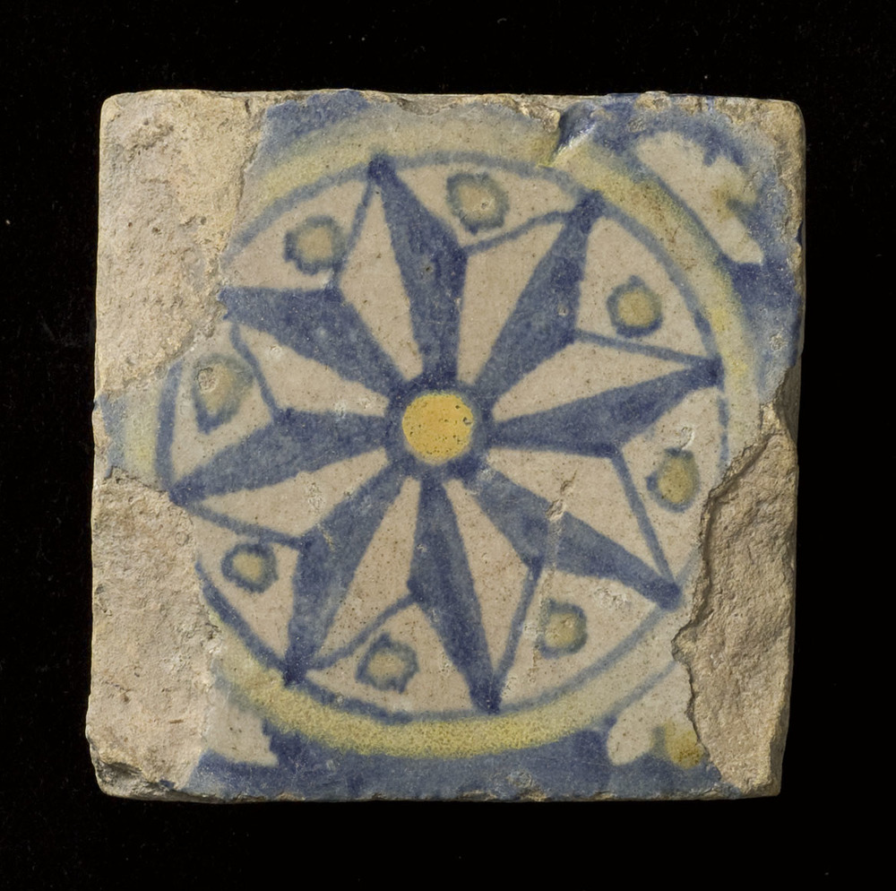 Tegel van keramiek met tinglazuur, voorstellende: de...