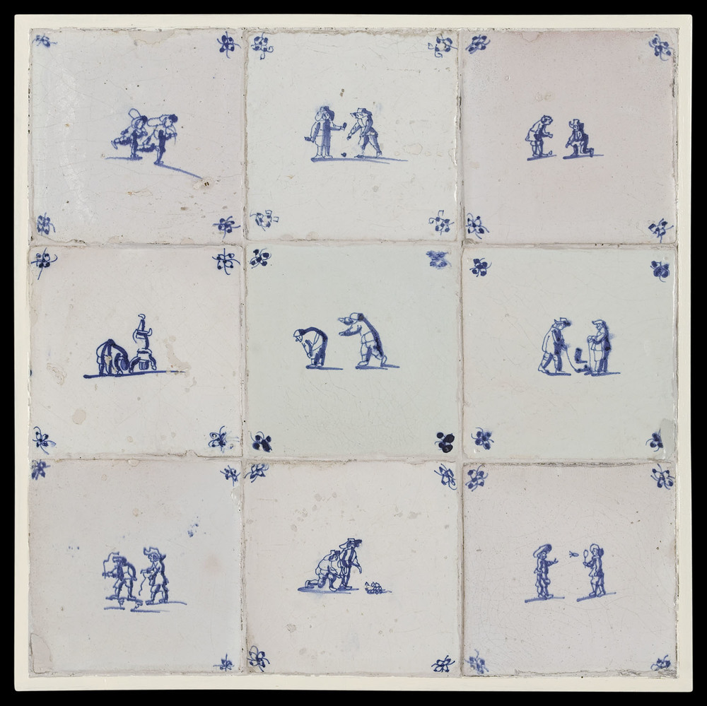 Tegelveld van keramiek, tinglazuur, voorstellende ki...