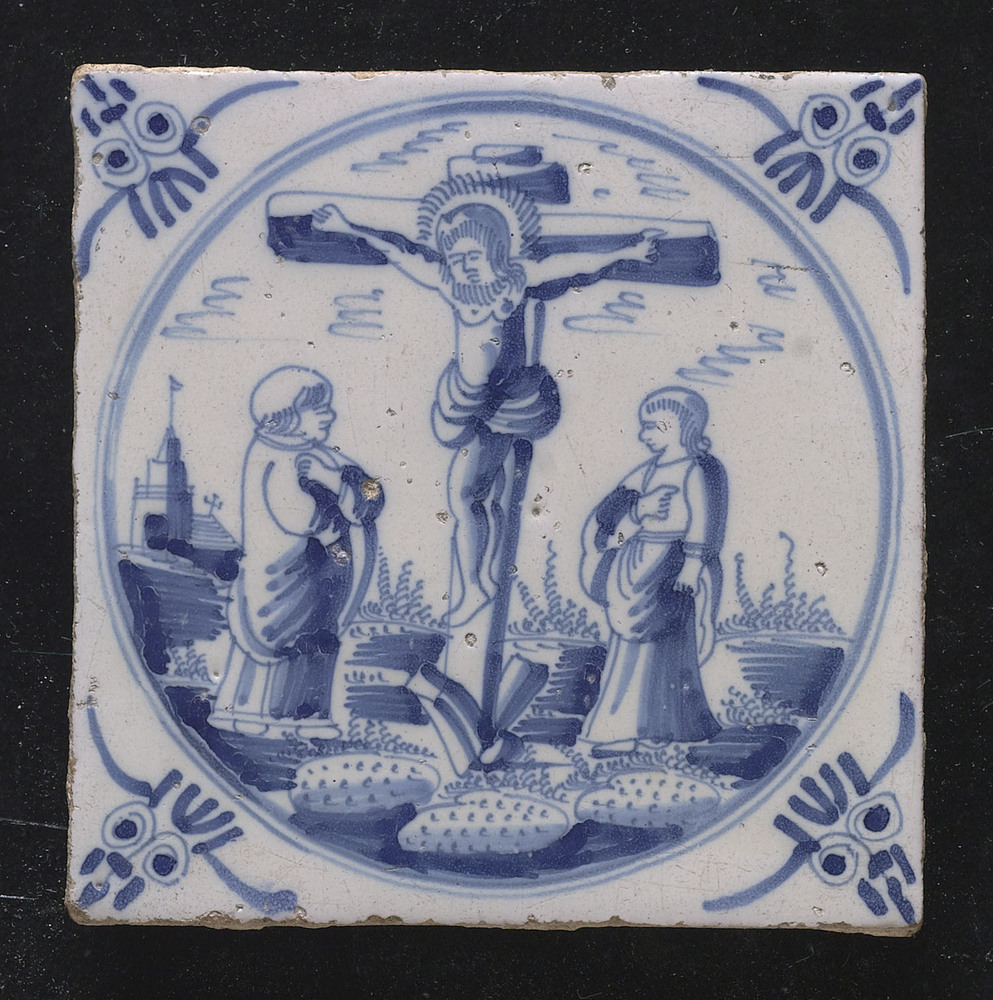 tegel van aardewerk met tinglazuur, voorstellende: D...