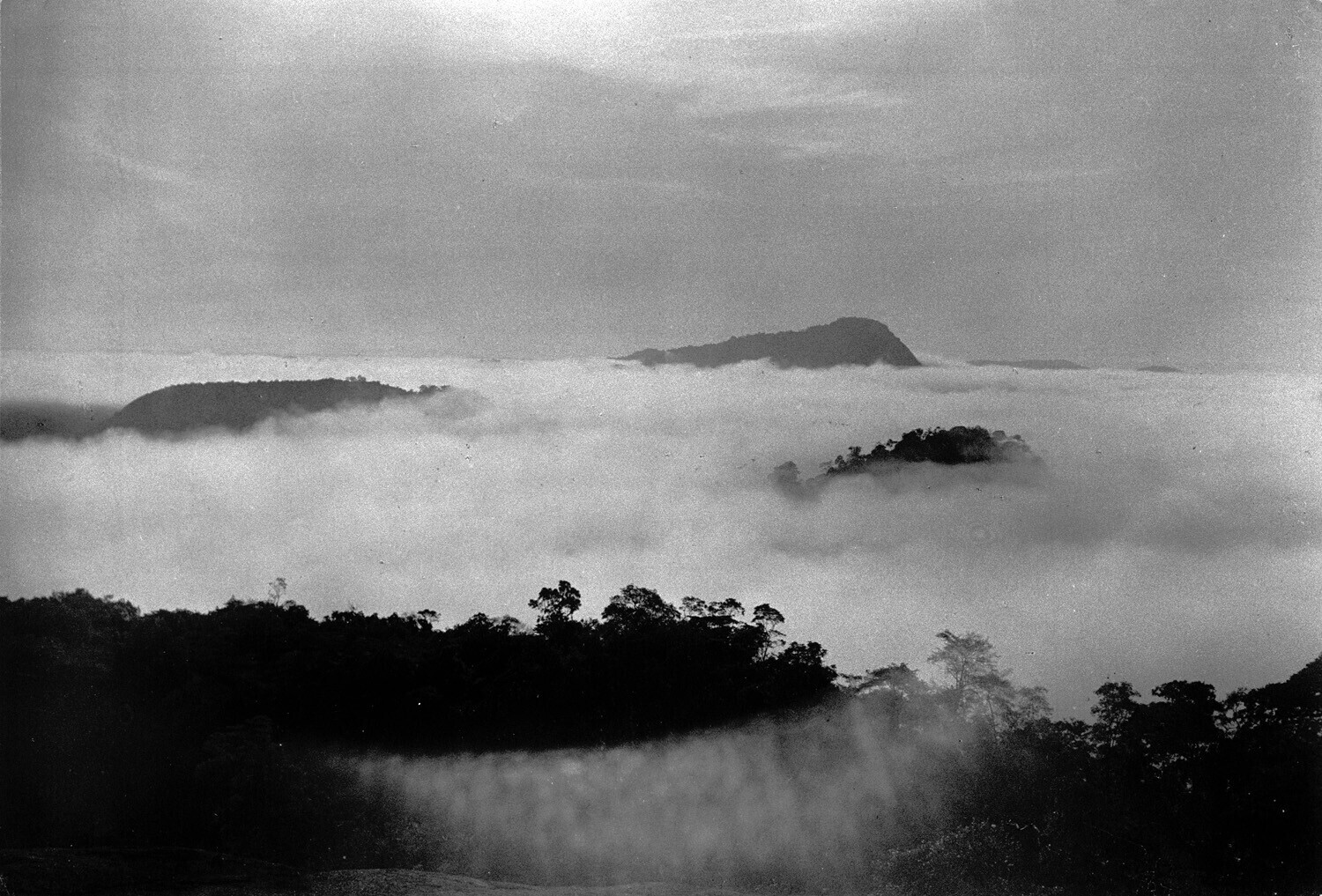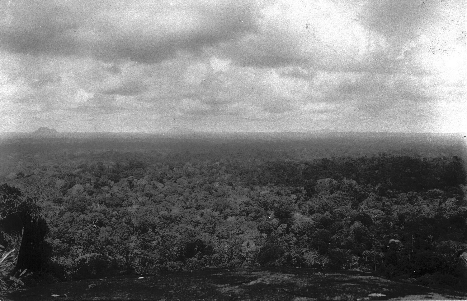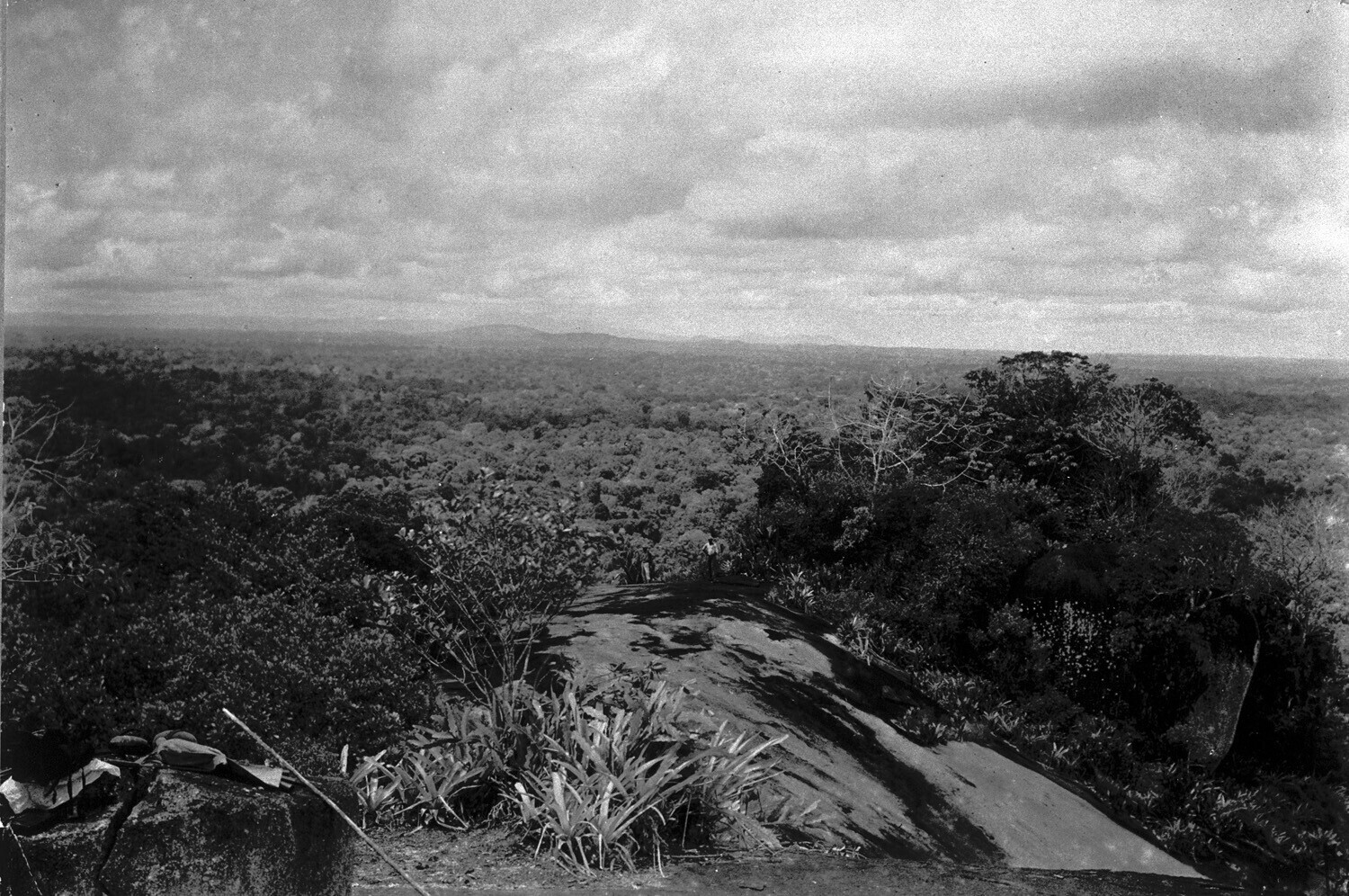 Uitzicht vanaf de Voltz-berg in Suriname met links d...