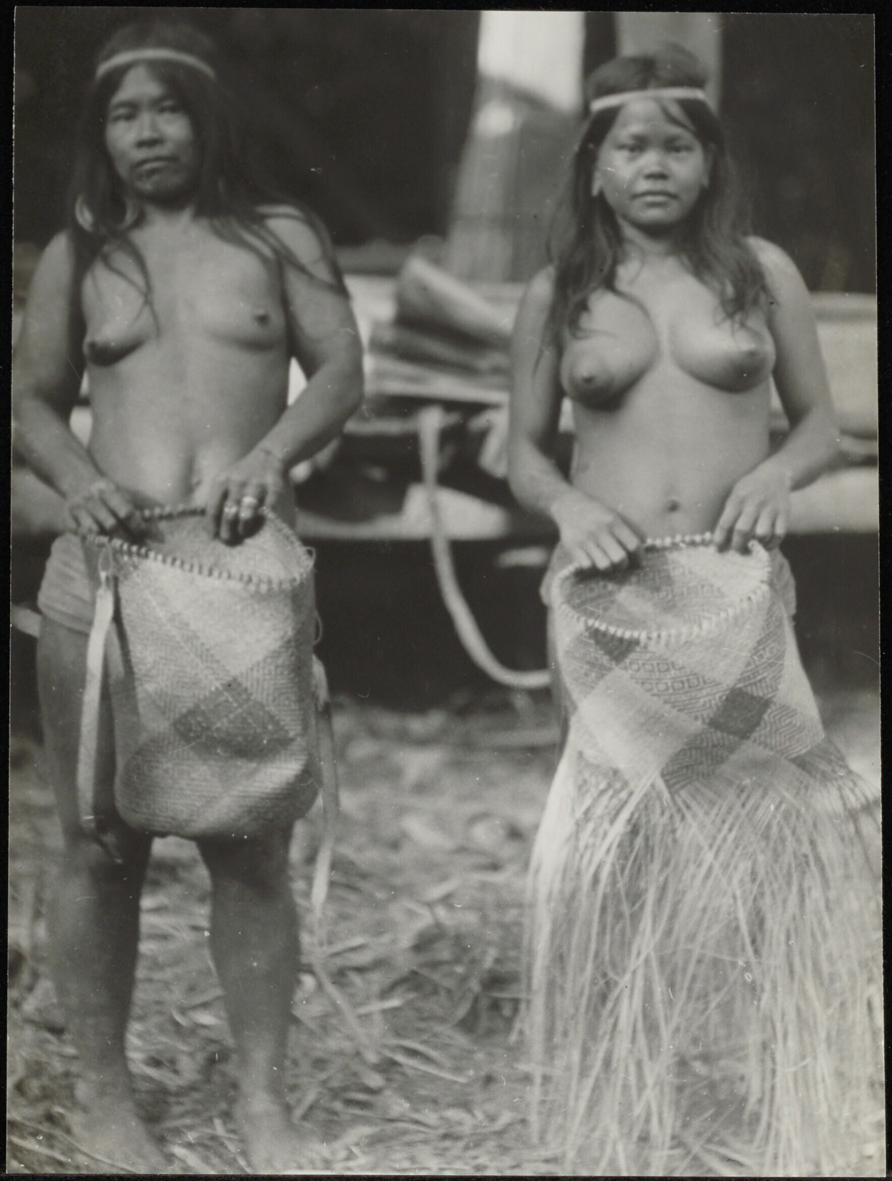 Twee Punan-Dayak vrouwen, een met een kind, de ander...