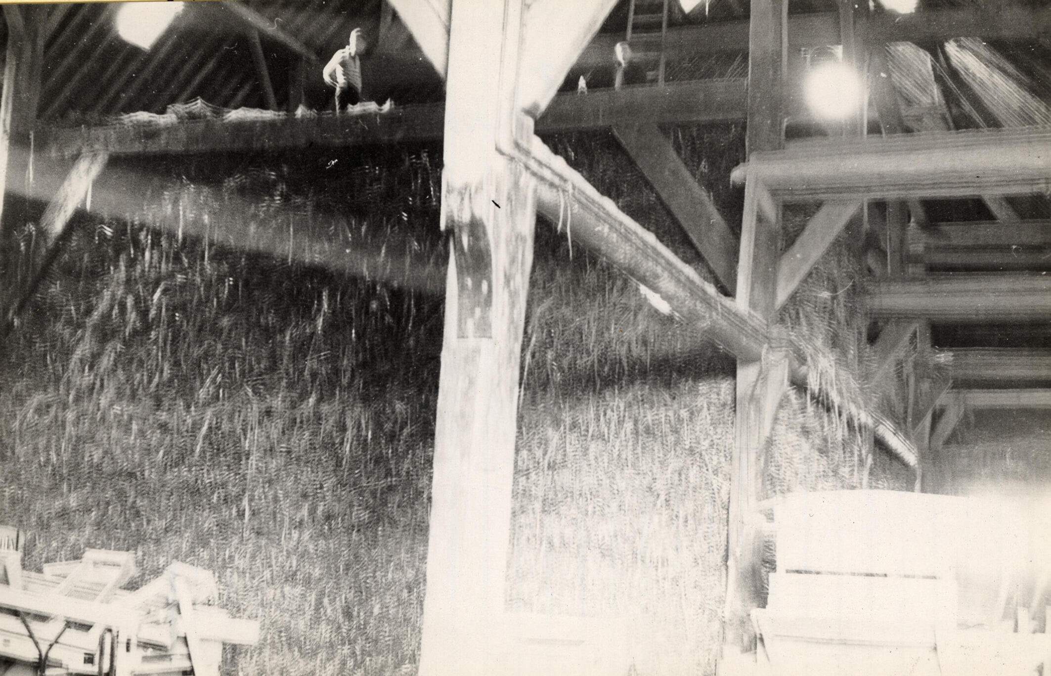 Gebinten in een boerderij, Numansdorp, 1936 (zwart-w...