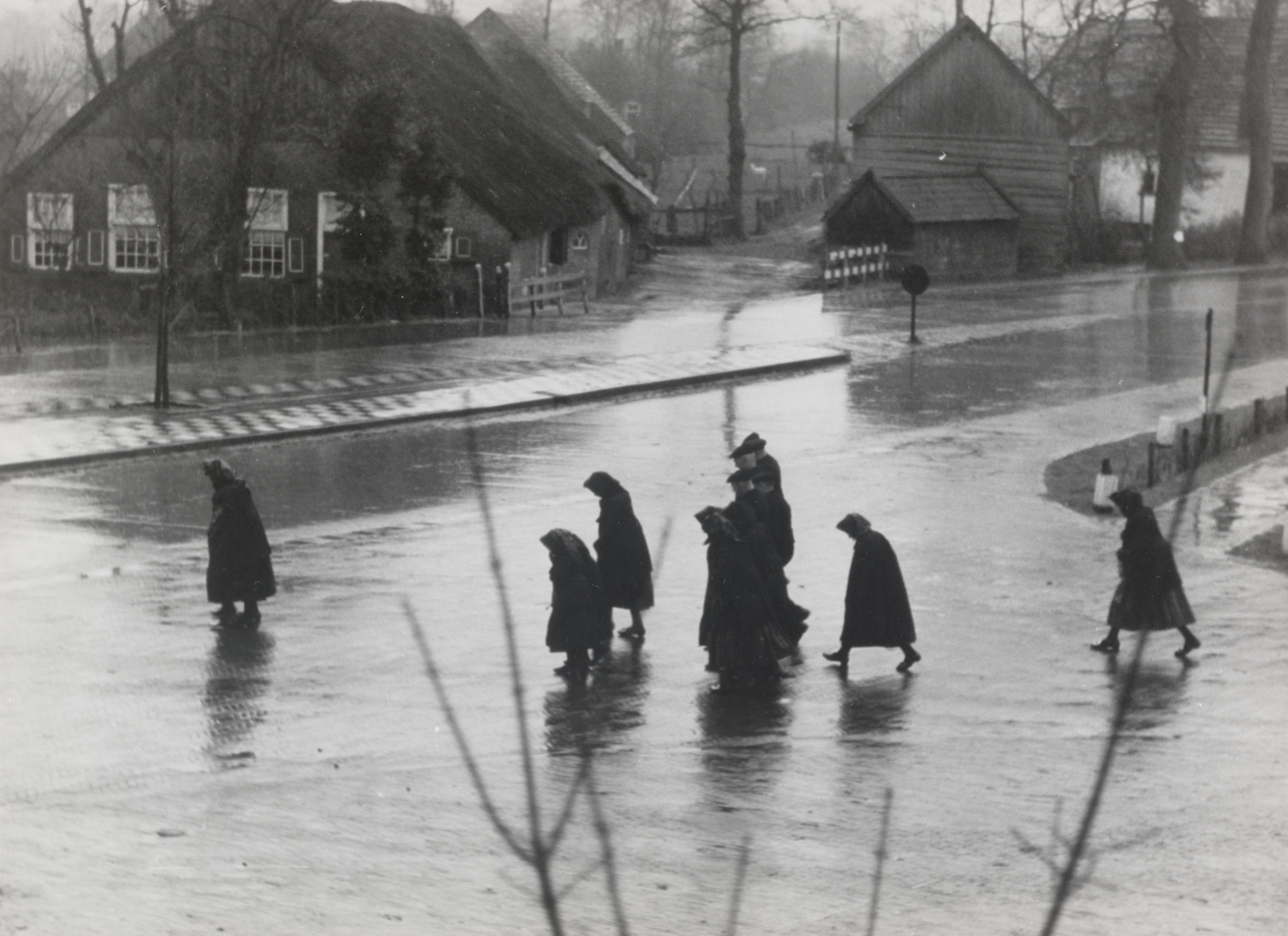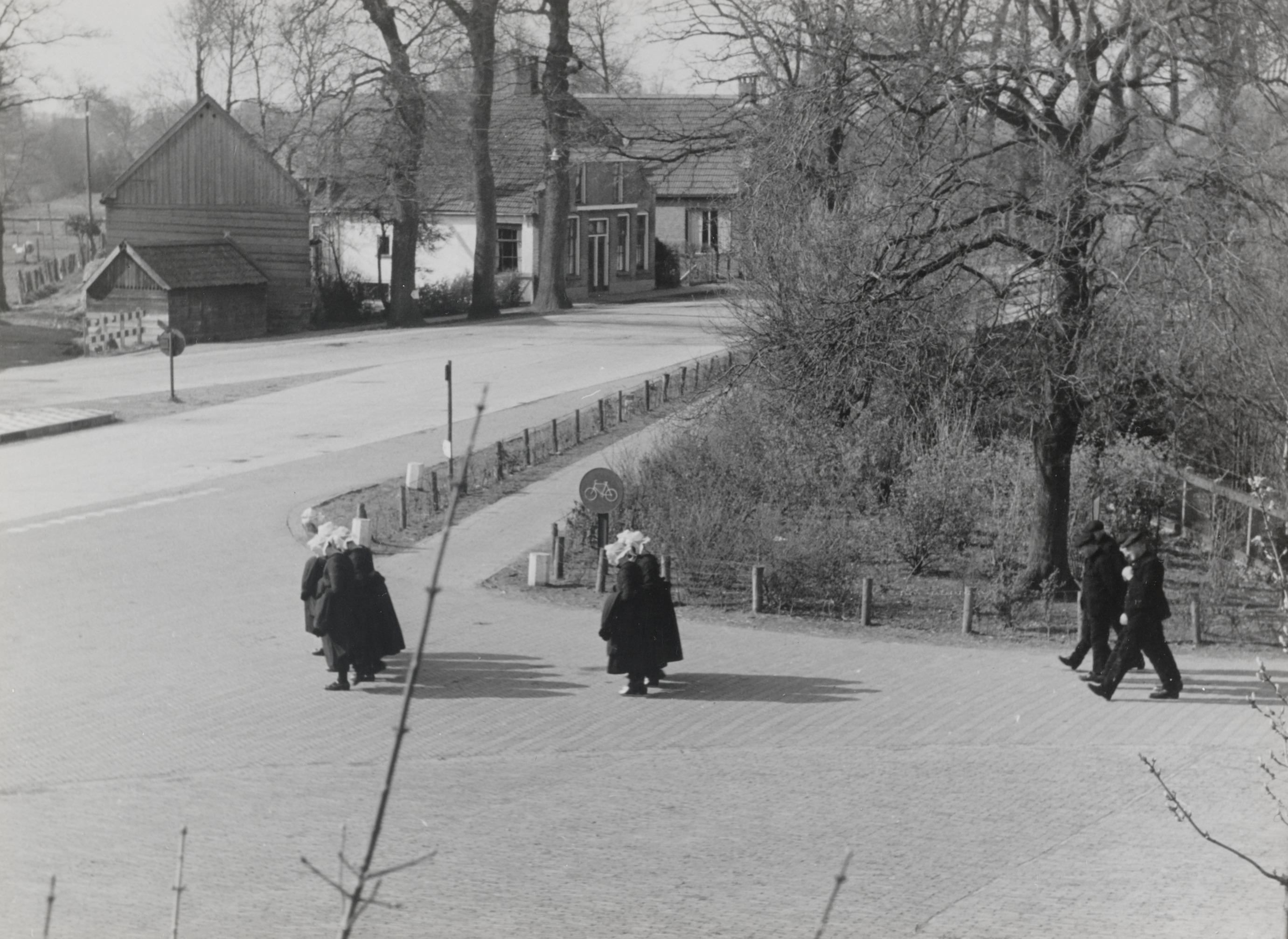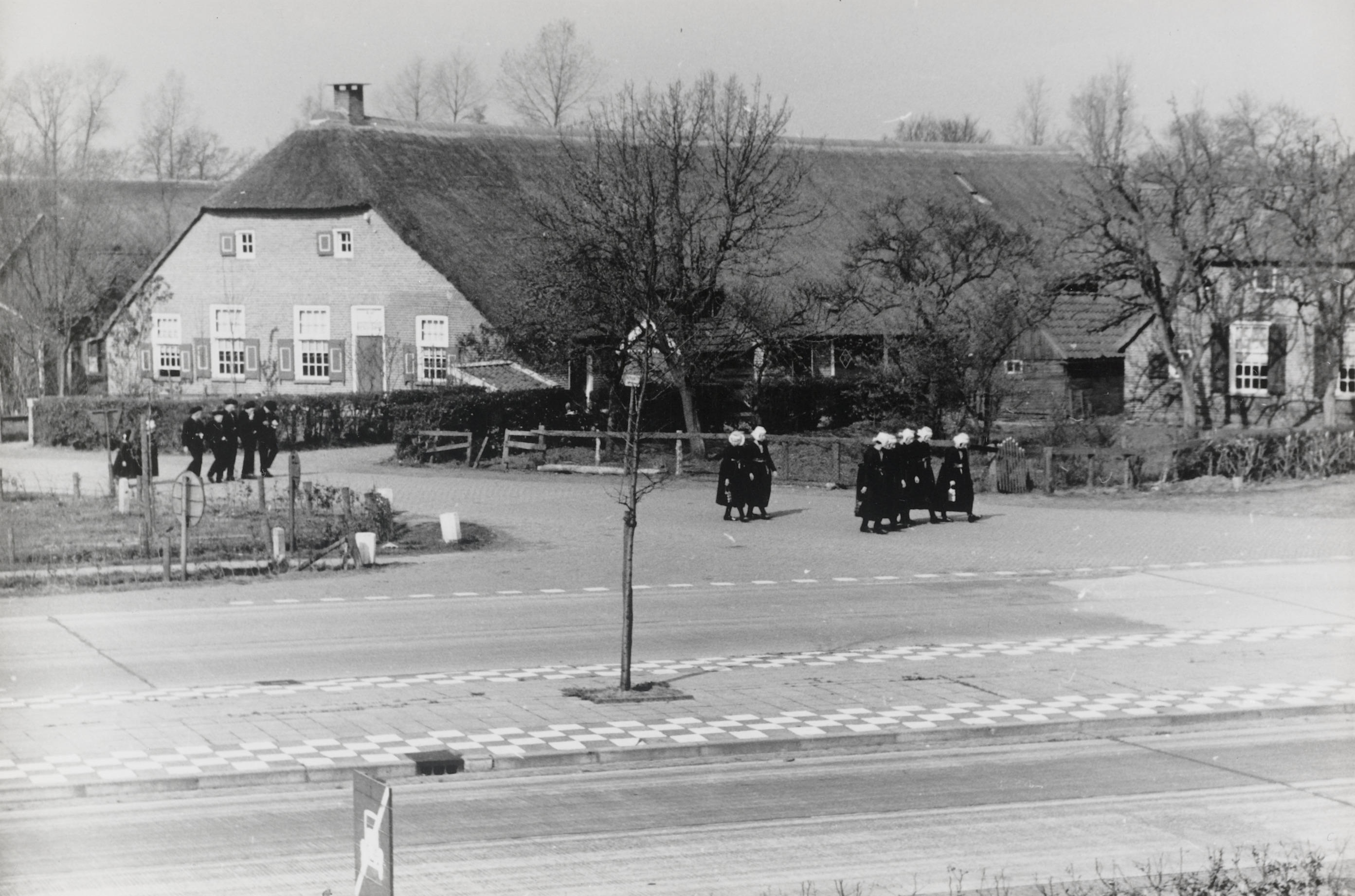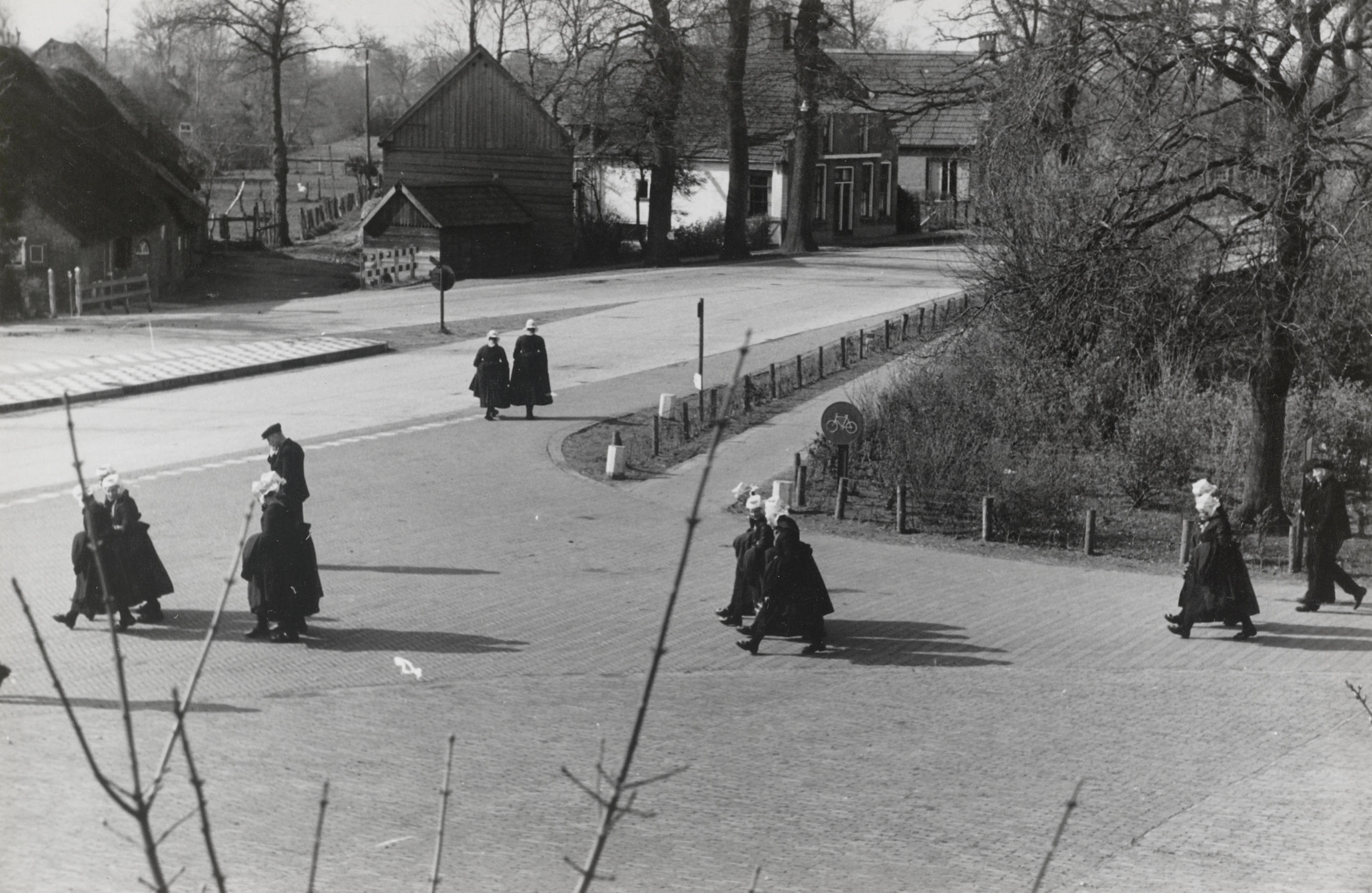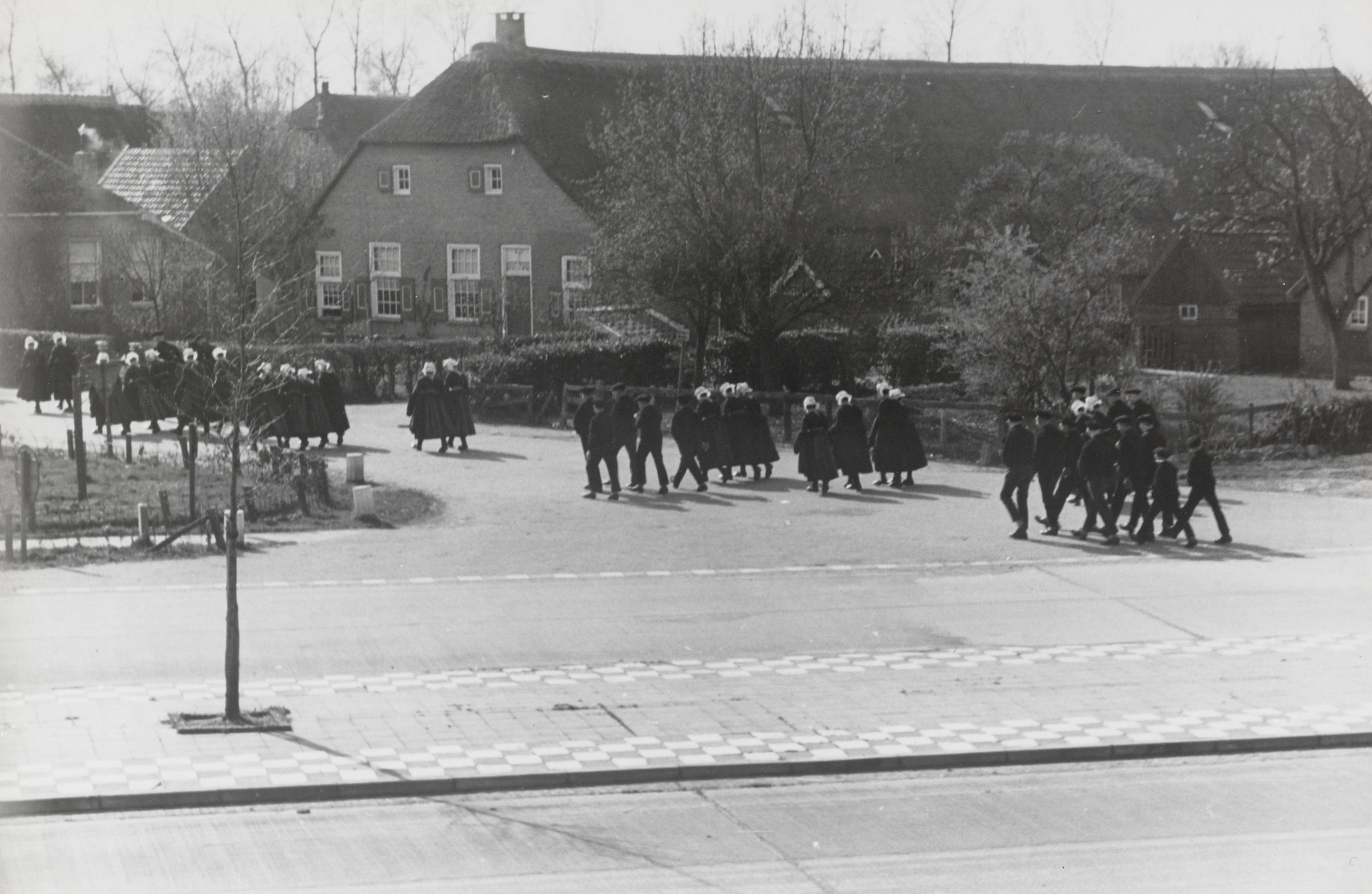 Kerkgangers ter hoogte van 'De Hoek', Staphorst, 194...