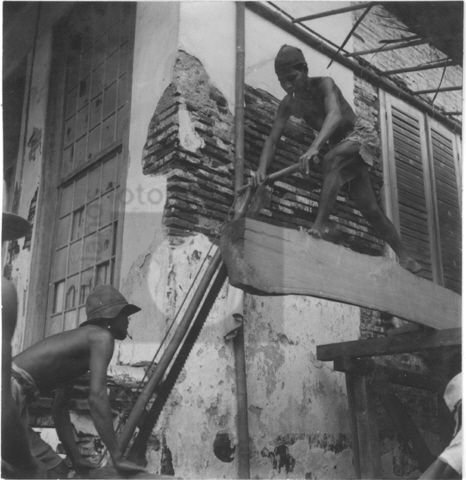 Vanwege restauratie aan een koloniaal gebouw wordt e...