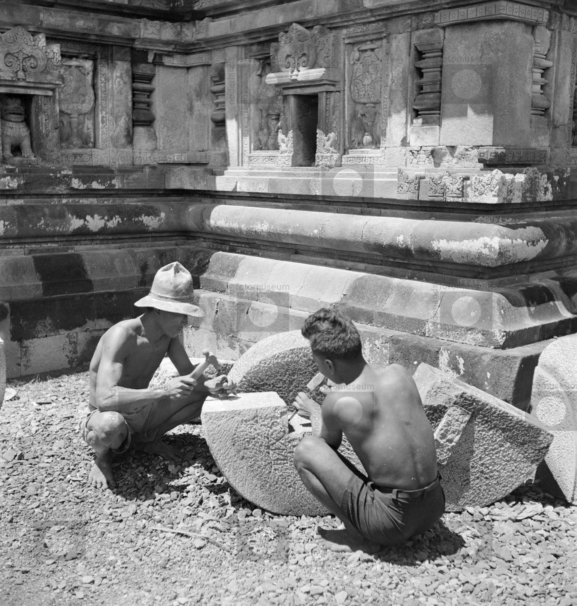 Overzicht van het restauratie-terrein van het Hindoe...