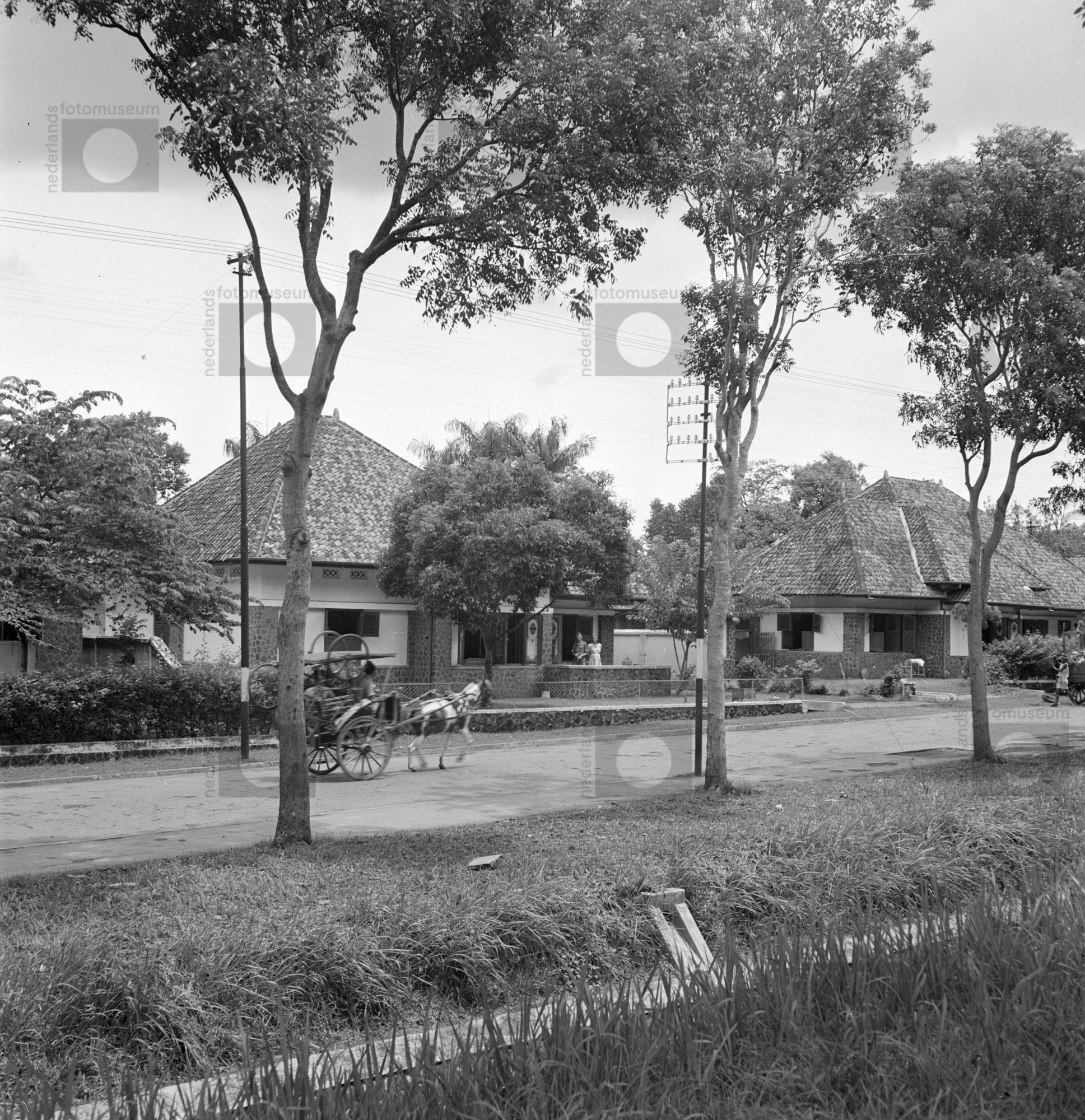 Overhoeks doorzicht van woonstraat met koloniale vil...