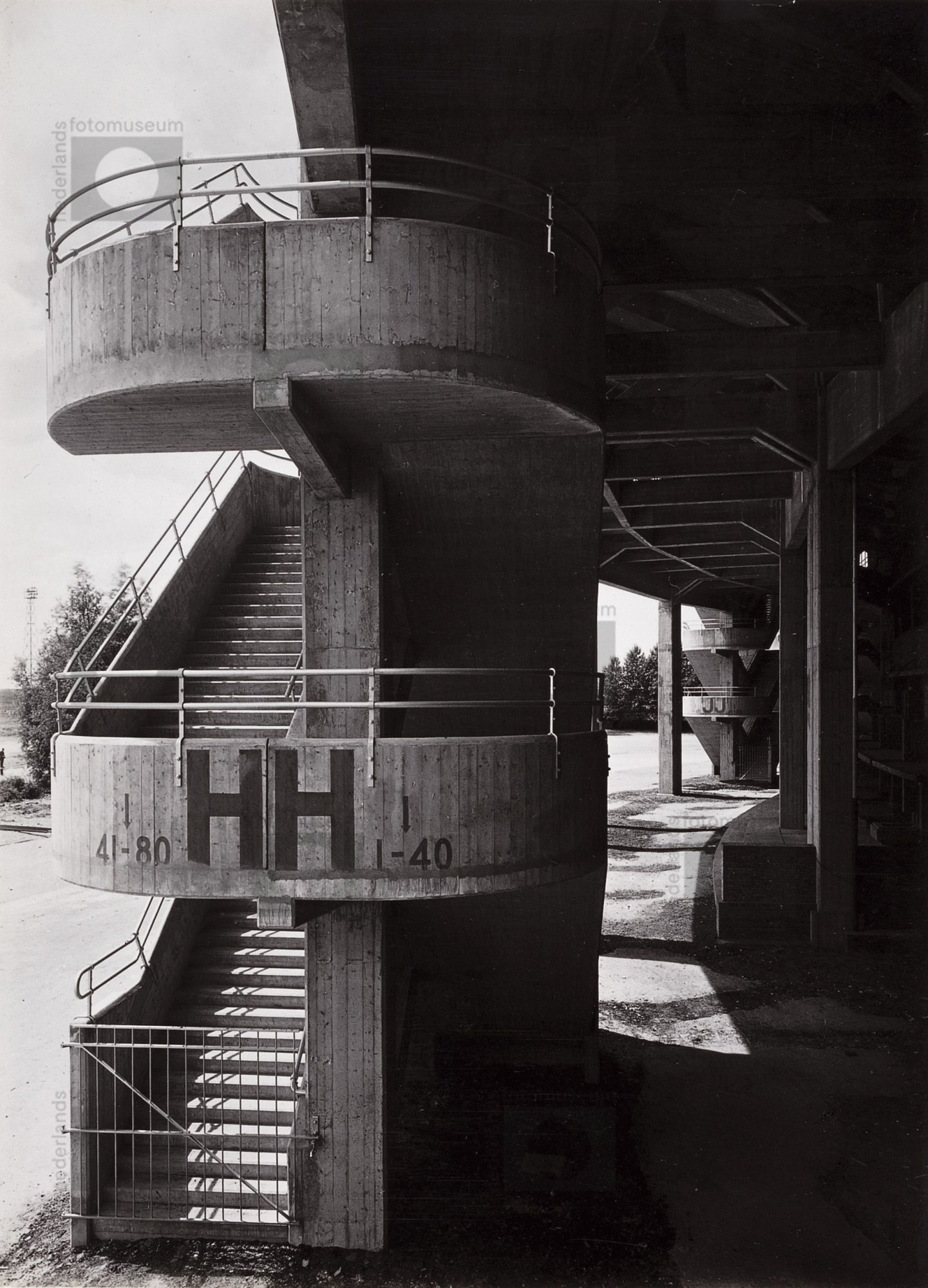Bouw van betonnen tribunes aan het Olympisch Stadion...