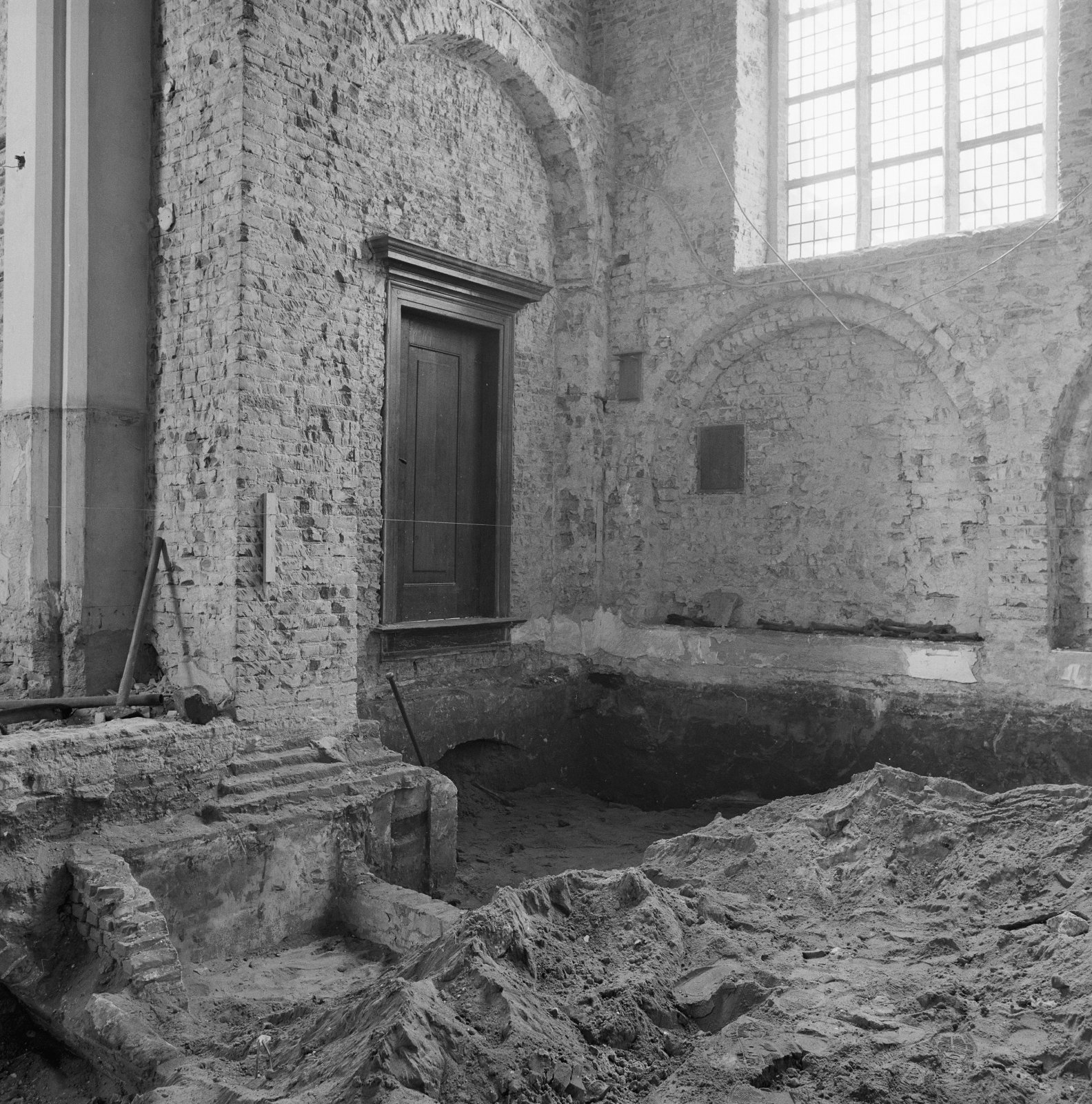 Interieur, opgravingen toegang zuider zijbeuk nabij ...