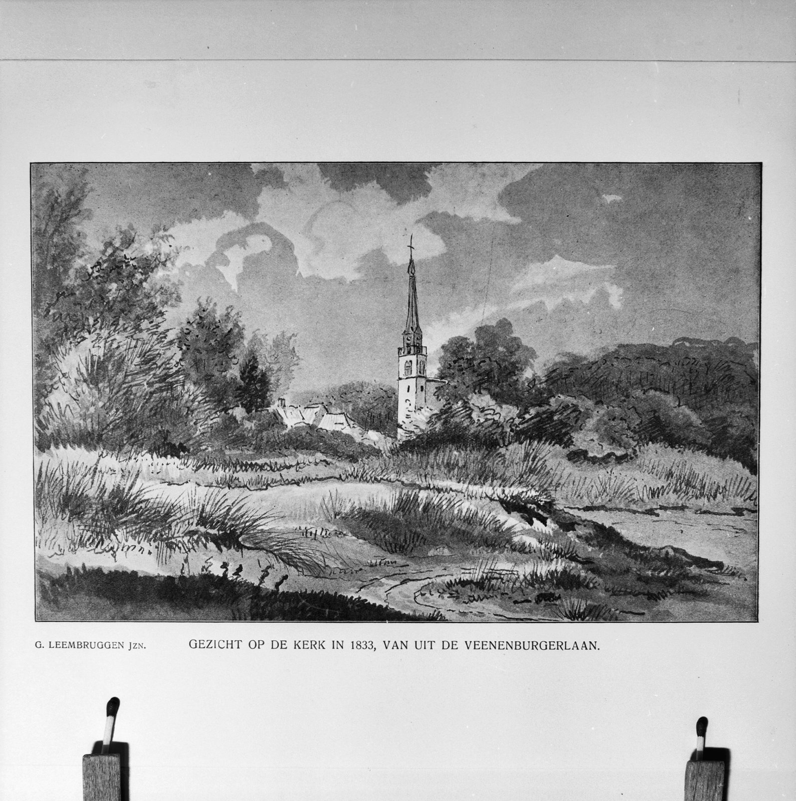 Interieur, prent ca. 1833: gezicht op de Hervormde k...