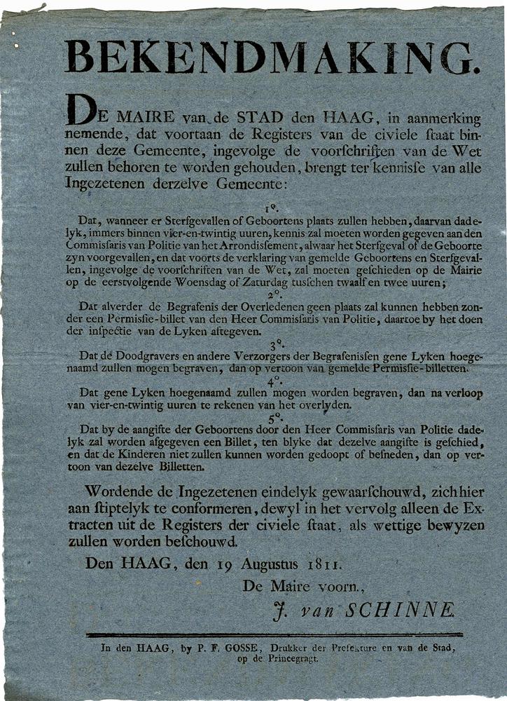 Bekendmaking door de maire van de stad Den Haag, 1811