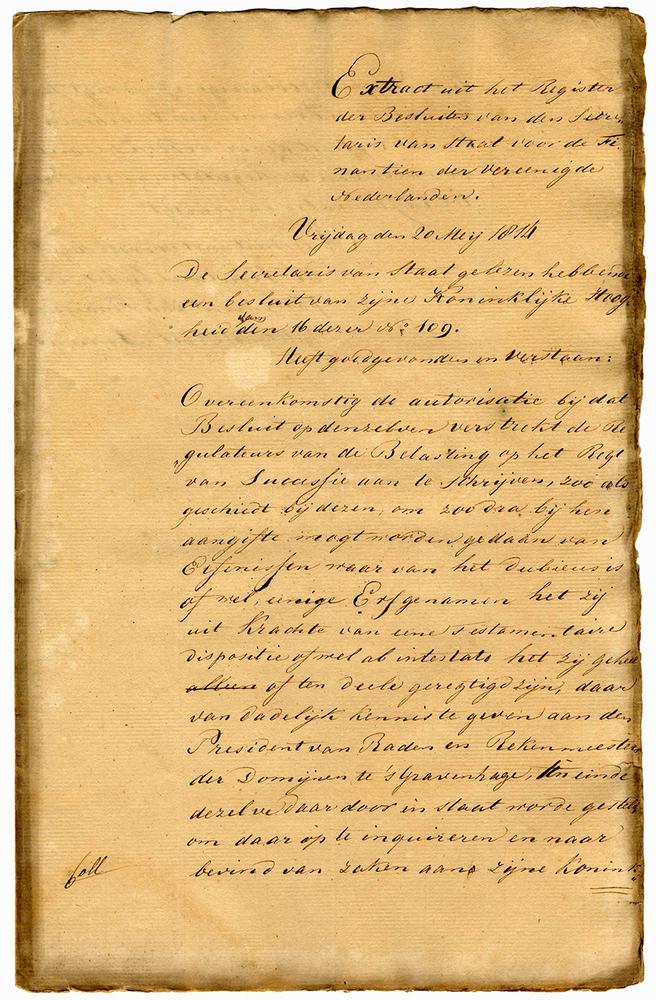 Aanvullend besluit van de Raad voor de Financien, 1806
