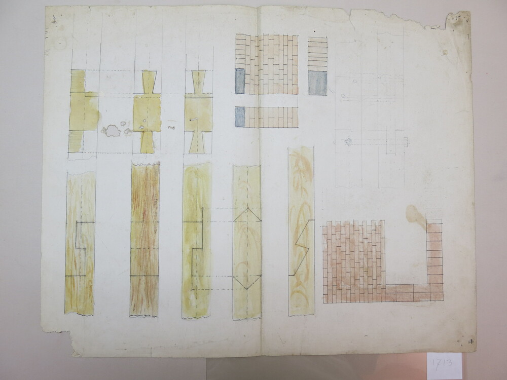 Tekening in potlood en inkt, voorstellende hout- en ...
