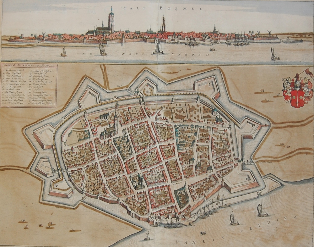 plattegrond en profiel van Zaltbommel met stadswapen...