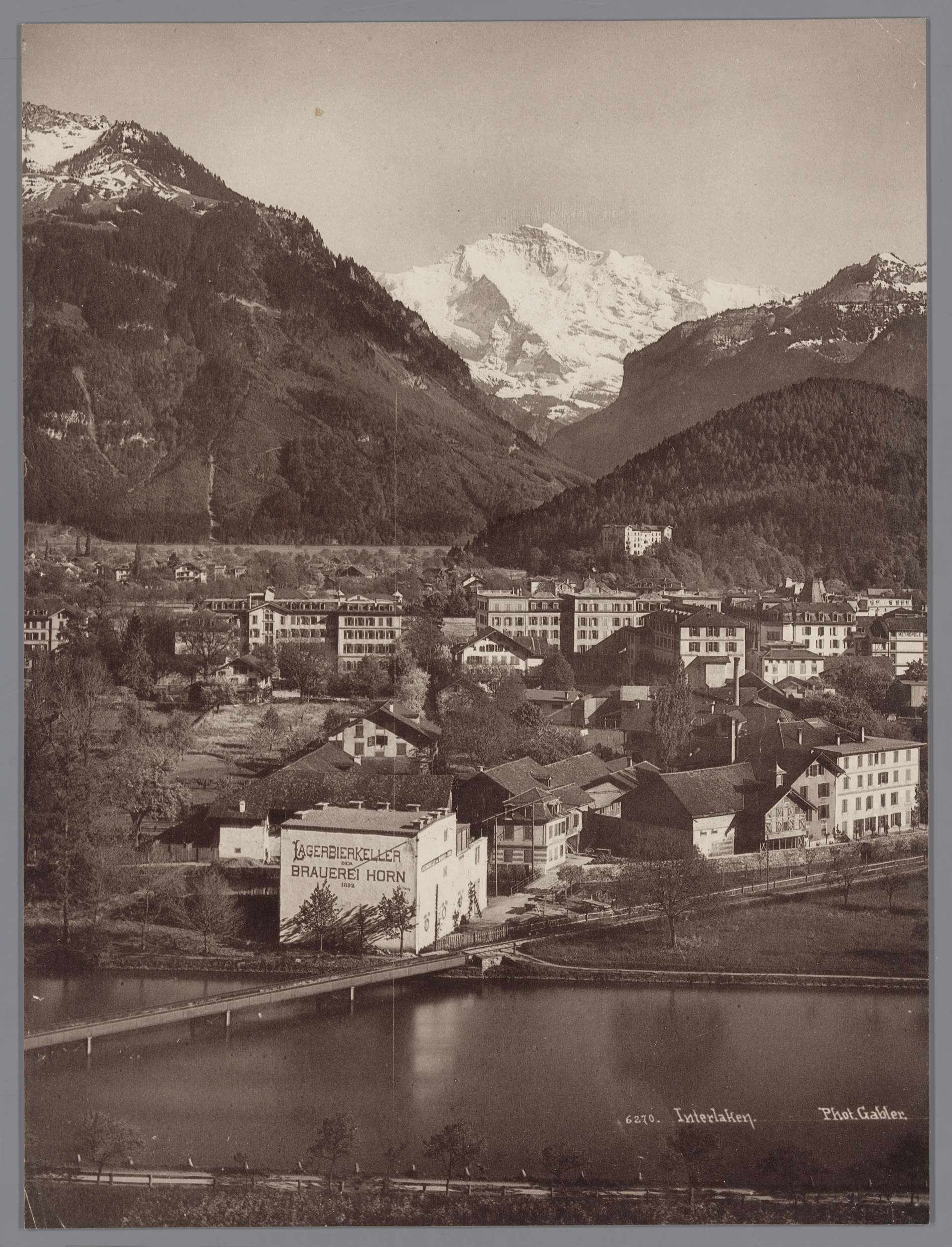Gezicht op Interlaken, op de voorgrond de brouwerij ...