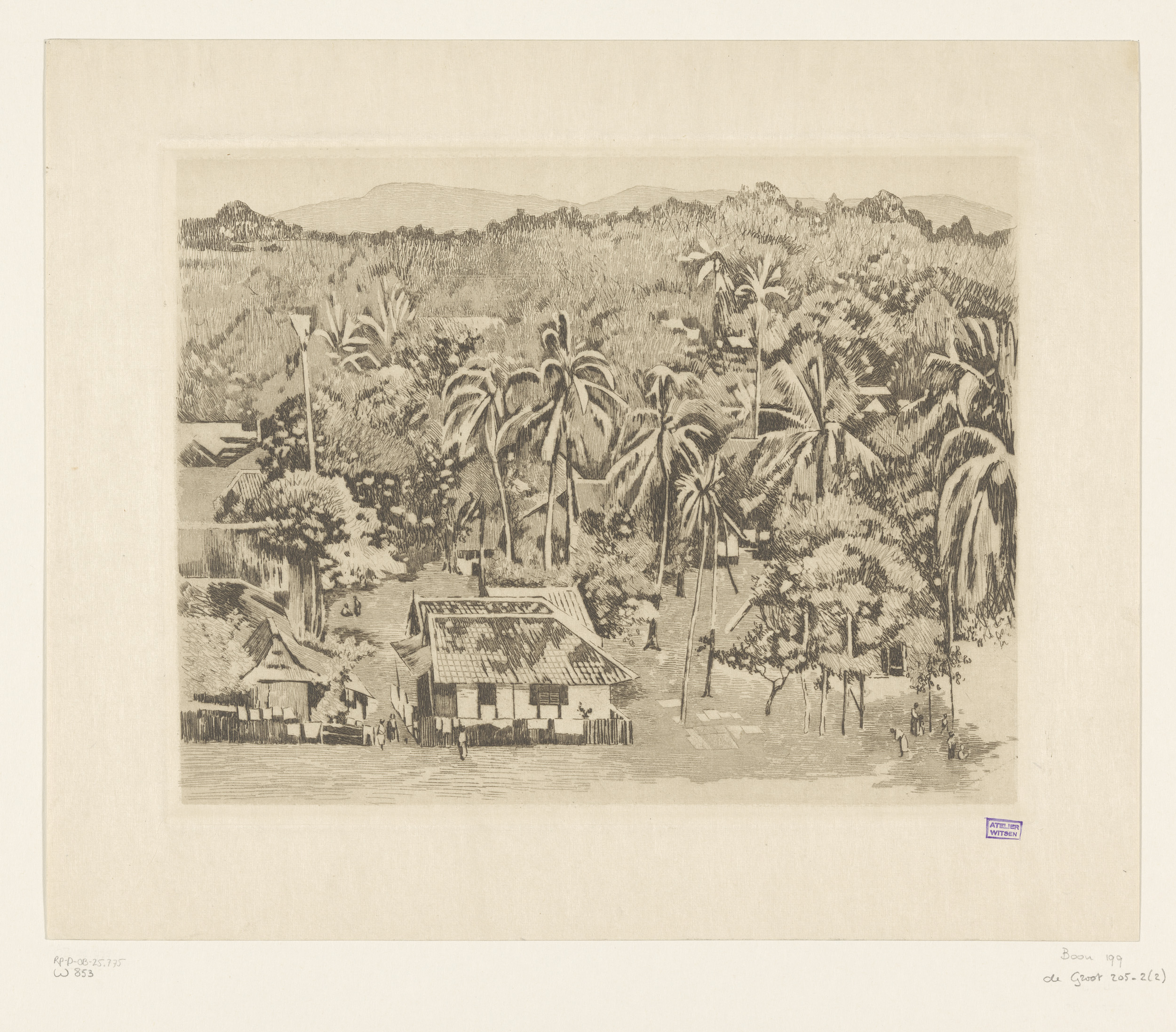 Gezicht op huizen en begroeiing in Buitenzorg