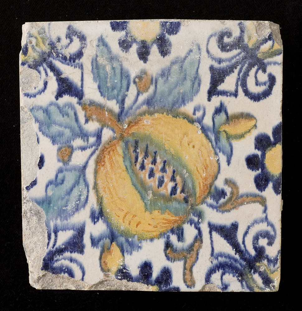 Tegel van keramiek met tinglazuur, voorstellende: or...