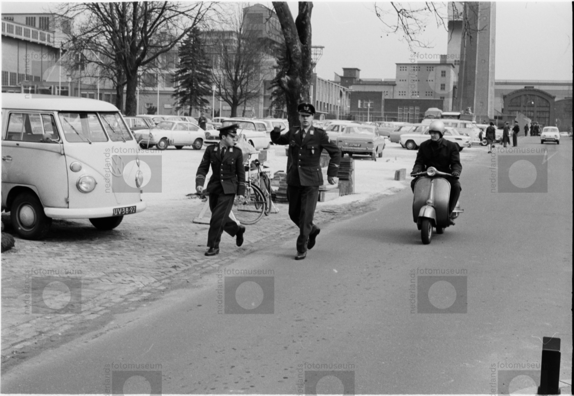 mannen in uniform Volkswagenbusje scooter, Brunssum