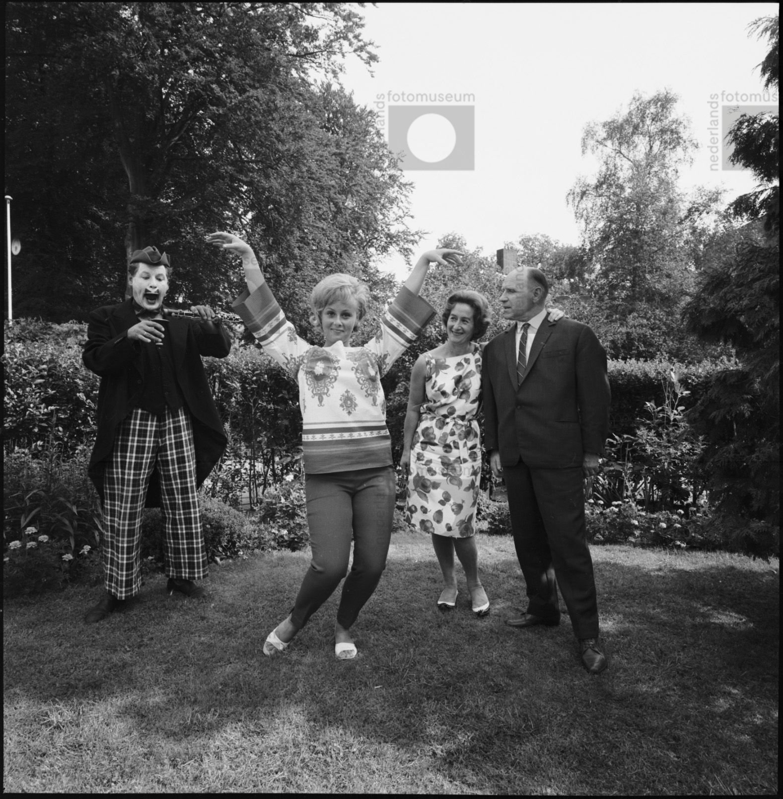 vrouw en clown dansen